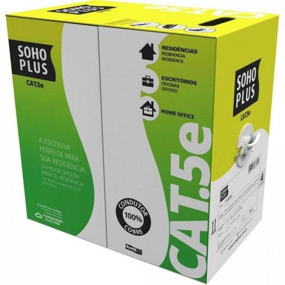 Cabo Rede Cat.5e Furukawa Cmx 305m Branco - Cx /305O Cabo de Rede CAT.5E CMX Furukawa Sohoplus é a escolha ideal para quem busca desempenho, confiabilidade e segurança na instalação de redes de alta qualidade. Projetado para atender às mais exigentes demandas, este cabo possui construção U/UTP com 4 pares trançados compostos de condutores sólidos de cobre nu, 24 AWG, isolados em polietileno especial, garantindo excelente performance na transmissão de dados. Sua capa externa em PVC na cor branca é resistente e possui características retardantes à chama, atendendo à norma IEC 60332-1, o que o torna uma opção segura para diversos ambientes.Com diâmetro nominal de 4,8mm e impedância característica de 100 ± 15% ohms, o Cabo Furukawa Sohoplus oferece estabilidade na conexão e alta qualidade de sinal, mesmo em frequências de 1 MHz a 250 MHz. A marcação sequencial métrica decrescente, de 305 a 0 metros, facilita o planejamento e controle na instalação, permitindo maior eficiência e economia durante o uso. Além disso, sua velocidade nominal de propagação de 68% garante rapidez na transmissão de dados, tornando-o perfeito para aplicações em redes domésticas, empresariais e outros projetos de conectividade.Robusto e durável, o cabo suporta temperaturas de instalação entre 0ºC e 40ºC, armazenamento de -20ºC a 70ºC e operação de -10ºC a 60ºC, proporcionando versatilidade em diferentes condições e ambientes. Com peso de 31 kg/km e dimensões compactas da embalagem, ele é fácil de armazenar e transportar, tornando o processo de instalação mais ágil e prático. Homologado pela Anatel, este produto garante conformidade com os padrões de qualidade exigidos, oferecendo tranquilidade e segurança ao consumidor.Escolha o Cabo de Rede CAT.5E CMX Furukawa Sohoplus e desfrute de uma solução confiável que combina tecnologia avançada, materiais de alta qualidade e certificação reconhecida para atender às suas necessidades de conectividade com excelência e performance.O Cabo de Rede CAT.5E CMX Furukawa Sohoplus é a escolha ideal para quem busca desempenho, confiabilidade e segurança na instalação de redes de alta qualidade. Projetado para atender às mais exigentes demandas, este cabo possui construção U/UTP com 4 pares trançados compostos de condutores sólidos de cobre nu, 24 AWG, isolados em polietileno especial, garantindo excelente performance na transmissão de dados. Sua capa externa em PVC na cor branca é resistente e possui características retardantes à chama, atendendo à norma IEC 60332-1, o que o torna uma opção segura para diversos ambientes.Com diâmetro nominal de 4,8mm e impedância característica de 100 ± 15% ohms, o Cabo Furukawa Sohoplus oferece estabilidade na conexão e alta qualidade de sinal, mesmo em frequências de 1 MHz a 250 MHz. A marcação sequencial métrica decrescente, de 305 a 0 metros, facilita o planejamento e controle na instalação, permitindo maior eficiência e economia durante o uso. Além disso, sua velocidade nominal de propagação de 68% garante rapidez na transmissão de dados, tornando-o perfeito para aplicações em redes domésticas, empresariais e outros projetos de conectividade.Robusto e durável, o cabo suporta temperaturas de instalação entre 0ºC e 40ºC, armazenamento de -20ºC a 70ºC e operação de -10ºC a 60ºC, proporcionando versatilidade em diferentes condições e ambientes. Com peso de 31 kg/km e dimensões compactas da embalagem, ele é fácil de armazenar e transportar, tornando o processo de instalação mais ágil e prático. Homologado pela Anatel, este produto garante conformidade com os padrões de qualidade exigidos, oferecendo tranquilidade e segurança ao consumidor.Escolha o Cabo de Rede CAT.5E CMX Furukawa Sohoplus e desfrute de uma solução confiável que combina tecnologia avançada, materiais de alta qualidade e certificação reconhecida para atender às suas necessidades de conectividade com excelência e performance.