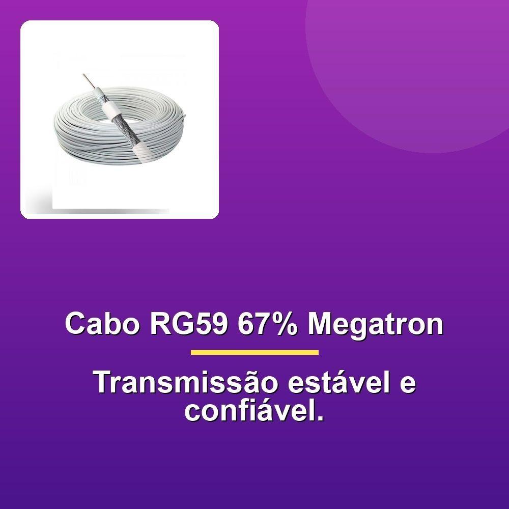 Cabo Coaxial Rg59 67% Rol Br Megatron 100mO Cabo Coaxial RG59 67% ROL BR MEGATRON é a solução perfeita para quem busca excelência em transmissão de sinal em sistemas de CFTV, antenas e conexões de vídeo. Desenvolvido com materiais de alta qualidade, ele oferece desempenho superior e confiabilidade, sendo ideal tanto para aplicações residenciais quanto para instalações profissionais. Sua blindagem de fios de alumínio trançados, com 67% de malha, proporciona uma proteção eficaz contra interferências externas, garantindo uma transmissão estável e segura, mesmo em ambientes desafiadores.Com condutor em aço cobreado e isolação em polietileno, este cabo foi projetado para maximizar a eficiência na condução de sinal, preservando a qualidade de imagem e som. O revestimento externo em PVC branco confere alta resistência e durabilidade, protegendo o cabo contra desgastes causados por fatores externos e aumentando sua vida útil. Além disso, o design flexível facilita a instalação em diversos cenários, incluindo sistemas de antenas UHF/VHF, ligações de câmeras em elevadores e conexões de equipamentos de vídeo.Empacotado em rolos de 100 metros, o Cabo Coaxial RG59 67% ROL BR MEGATRON oferece a quantidade ideal para projetos de médio e grande porte, permitindo uma instalação contínua e sem emendas desnecessárias. Sua performance superior e construção robusta o tornam indispensável para quem prioriza qualidade, segurança e eficiência em sistemas de comunicação e transmissão de sinal. Escolha o Cabo Coaxial RG59 67% ROL BR MEGATRON e eleve o padrão de suas instalações com um produto confiável e de alto desempenho.O Cabo Coaxial RG59 67% ROL BR MEGATRON é a solução perfeita para quem busca excelência em transmissão de sinal em sistemas de CFTV, antenas e conexões de vídeo. Desenvolvido com materiais de alta qualidade, ele oferece desempenho superior e confiabilidade, sendo ideal tanto para aplicações residenciais quanto para instalações profissionais. Sua blindagem de fios de alumínio trançados, com 67% de malha, proporciona uma proteção eficaz contra interferências externas, garantindo uma transmissão estável e segura, mesmo em ambientes desafiadores.Com condutor em aço cobreado e isolação em polietileno, este cabo foi projetado para maximizar a eficiência na condução de sinal, preservando a qualidade de imagem e som. O revestimento externo em PVC branco confere alta resistência e durabilidade, protegendo o cabo contra desgastes causados por fatores externos e aumentando sua vida útil. Além disso, o design flexível facilita a instalação em diversos cenários, incluindo sistemas de antenas UHF/VHF, ligações de câmeras em elevadores e conexões de equipamentos de vídeo.Empacotado em rolos de 100 metros, o Cabo Coaxial RG59 67% ROL BR MEGATRON oferece a quantidade ideal para projetos de médio e grande porte, permitindo uma instalação contínua e sem emendas desnecessárias. Sua performance superior e construção robusta o tornam indispensável para quem prioriza qualidade, segurança e eficiência em sistemas de comunicação e transmissão de sinal. Escolha o Cabo Coaxial RG59 67% ROL BR MEGATRON e eleve o padrão de suas instalações com um produto confiável e de alto desempenho.