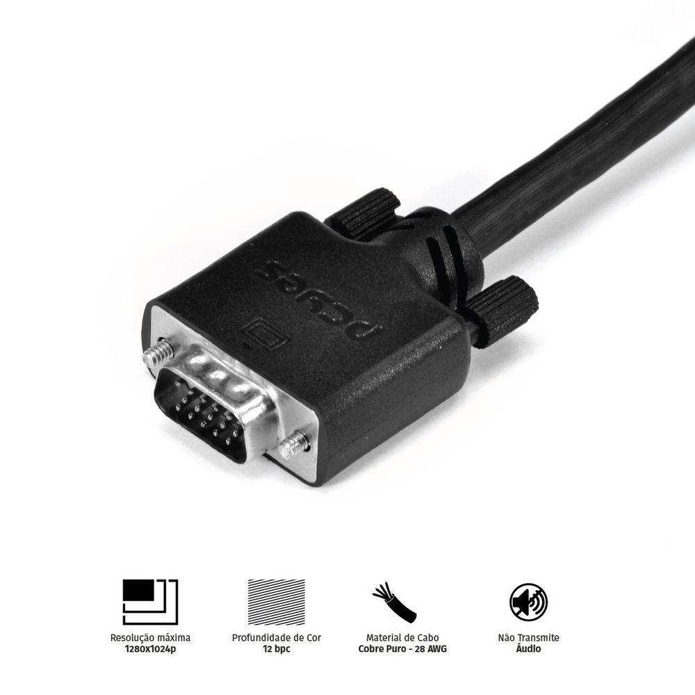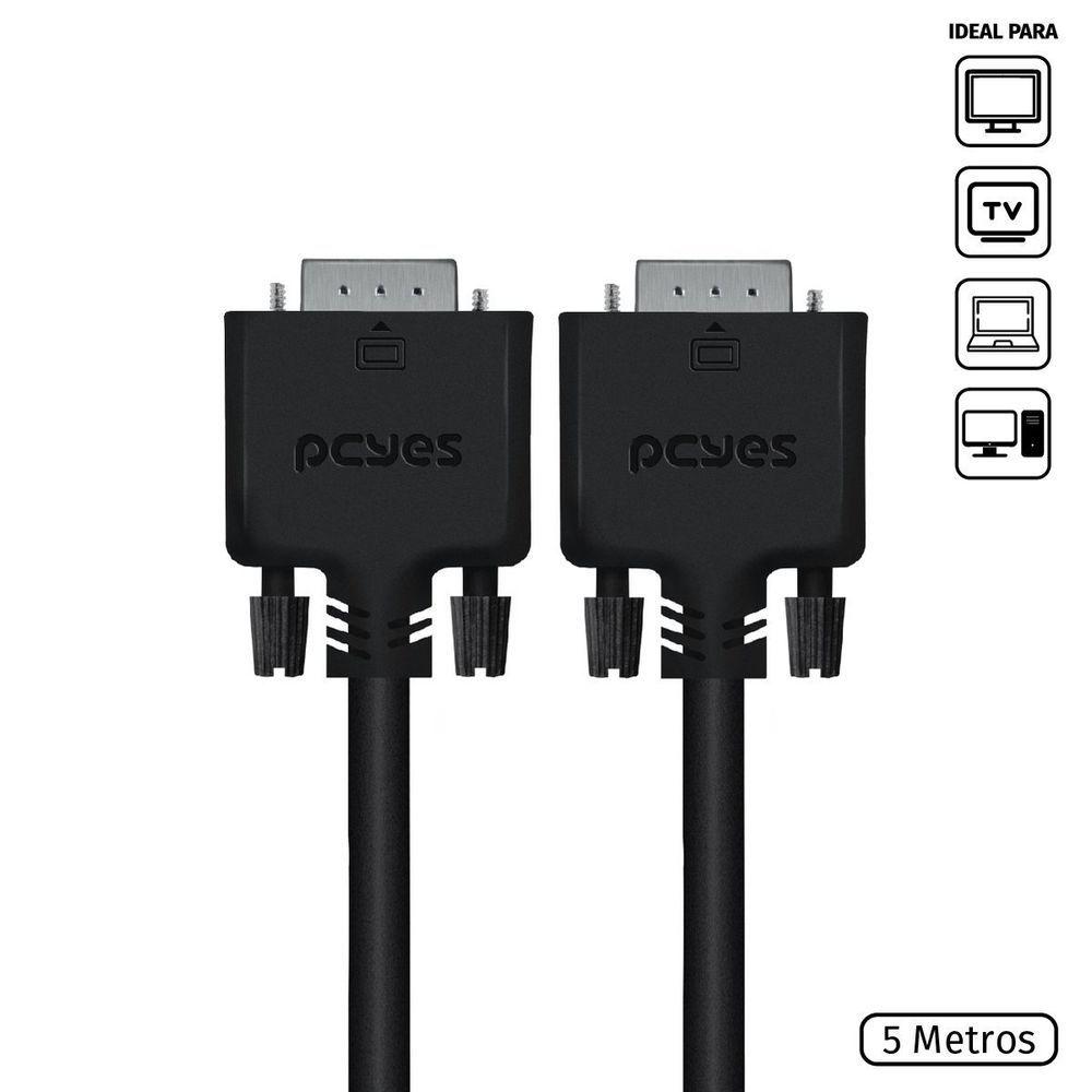 Cabo De Vídeo Vga 15 Pinos 5m Puro CobreTransforme a experiência com seus dispositivos em algo verdadeiramente excepcional com o Cabo de Vídeo VGA 15 Pinos Macho para VGA 15 Pinos Macho da PCYES. Projetado para quem não abre mão de qualidade e desempenho, este cabo estabelece um novo padrão para conexões VGA, sendo a escolha ideal para equipamentos de nível profissional e usuários exigentes que buscam um equilíbrio perfeito entre inovação e acessibilidade.Fabricado com materiais de alto padrão, como cobre puro 28 AWG, este cabo garante uma transmissão de sinal analógica estável e confiável, proporcionando uma qualidade de imagem impressionante com resolução máxima de 1280x1024p e profundidade de cor de 12 bpc. Seja para conectar monitores, placas de vídeo, notebooks, computadores ou até mesmo TVs, sua versatilidade faz com que ele atenda a uma ampla gama de dispositivos compatíveis com conexão VGA. Vale lembrar que, por ser um cabo exclusivamente de vídeo, ele não transmite áudio, garantindo foco total na excelência visual.O design exclusivo da PCYES, 100% brasileiro, combina robustez e minimalismo de forma única, refletindo a essência da marca e entregando um produto que alia estética e funcionalidade. Além disso, a construção cuidadosa e os materiais de alta qualidade asseguram durabilidade superior, oferecendo um cabo que acompanha você em suas necessidades diárias por muito mais tempo.Com 5 metros de comprimento, este cabo oferece liberdade para instalações mais flexíveis, permitindo conexões práticas mesmo em ambientes maiores. Seja para uso profissional ou para otimizar seu setup pessoal, ele entrega a confiabilidade que você precisa para trabalhar ou se divertir sem preocupações. Escolher o Cabo de Vídeo VGA da PCYES é optar por tecnologia de ponta, design diferenciado e desempenho incomparável em um único produto.Transforme a experiência com seus dispositivos em algo verdadeiramente excepcional com o Cabo de Vídeo VGA 15 Pinos Macho para VGA 15 Pinos Macho da PCYES. Projetado para quem não abre mão de qualidade e desempenho, este cabo estabelece um novo padrão para conexões VGA, sendo a escolha ideal para equipamentos de nível profissional e usuários exigentes que buscam um equilíbrio perfeito entre inovação e acessibilidade.Fabricado com materiais de alto padrão, como cobre puro 28 AWG, este cabo garante uma transmissão de sinal analógica estável e confiável, proporcionando uma qualidade de imagem impressionante com resolução máxima de 1280x1024p e profundidade de cor de 12 bpc. Seja para conectar monitores, placas de vídeo, notebooks, computadores ou até mesmo TVs, sua versatilidade faz com que ele atenda a uma ampla gama de dispositivos compatíveis com conexão VGA. Vale lembrar que, por ser um cabo exclusivamente de vídeo, ele não transmite áudio, garantindo foco total na excelência visual.O design exclusivo da PCYES, 100% brasileiro, combina robustez e minimalismo de forma única, refletindo a essência da marca e entregando um produto que alia estética e funcionalidade. Além disso, a construção cuidadosa e os materiais de alta qualidade asseguram durabilidade superior, oferecendo um cabo que acompanha você em suas necessidades diárias por muito mais tempo.Com 5 metros de comprimento, este cabo oferece liberdade para instalações mais flexíveis, permitindo conexões práticas mesmo em ambientes maiores. Seja para uso profissional ou para otimizar seu setup pessoal, ele entrega a confiabilidade que você precisa para trabalhar ou se divertir sem preocupações. Escolher o Cabo de Vídeo VGA da PCYES é optar por tecnologia de ponta, design diferenciado e desempenho incomparável em um único produto.