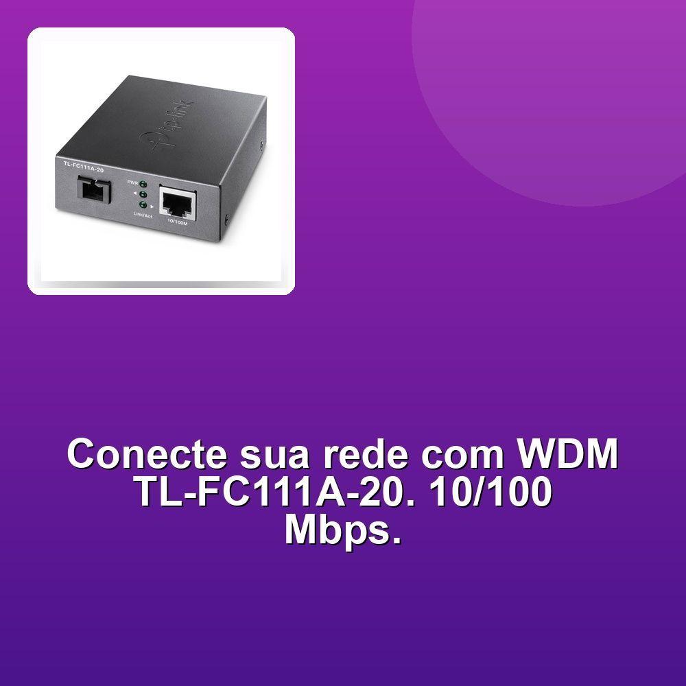 Conversor De Mídia Wdm De 10/100 Mbps Tl-fc111a-20 SmbO TL-FC111A-20 é um conversor de mídia WDM de 10/100 Mbps que oferece uma solução robusta e eficiente para sua rede. Com interface de fácil configuração, ele garante conectividade rápida e confiável para seus equipamentos de redes. A compatibilidade com tecnologias como Ethernet e fibra óptica o torna ideal para diversas aplicações. Beneficie-se da flexibilidade de conexões em 10/100 Mbps, ideal para cargas de transmissão moderadas. A tecnologia WDM garante uma transmissão simultânea de dados em diferentes frequências, otimizando a capacidade da sua rede. Além disso, o TL-FC111A-20 possui um design compacto e resistente que se encaixa perfeitamente em diversas configurações de sua infraestrutura. Sua instalação é simples, proporcionando alta performance e economia de tempo. O TL-FC111A-20 oferece uma solução completa para conectar seus equipamentos de rede, garantindo a qualidade e o desempenho que você precisa para suas operações.O TL-FC111A-20 é um conversor de mídia WDM de 10/100 Mbps que oferece uma solução robusta e eficiente para sua rede. Com interface de fácil configuração, ele garante conectividade rápida e confiável para seus equipamentos de redes. A compatibilidade com tecnologias como Ethernet e fibra óptica o torna ideal para diversas aplicações. Beneficie-se da flexibilidade de conexões em 10/100 Mbps, ideal para cargas de transmissão moderadas. A tecnologia WDM garante uma transmissão simultânea de dados em diferentes frequências, otimizando a capacidade da sua rede. Além disso, o TL-FC111A-20 possui um design compacto e resistente que se encaixa perfeitamente em diversas configurações de sua infraestrutura. Sua instalação é simples, proporcionando alta performance e economia de tempo. O TL-FC111A-20 oferece uma solução completa para conectar seus equipamentos de rede, garantindo a qualidade e o desempenho que você precisa para suas operações.