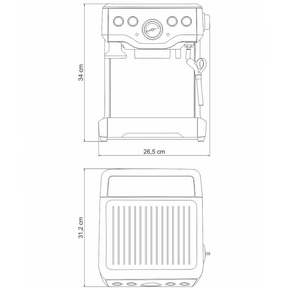 Cafeteira Tramontina By Breville Express 1,8 Litros Em Aço Inox Prata 110v 69065011CAFETEIRA TRAMONTINA BY BREVILLE EXPRESS 1,8 LITROS EM AÇO INOX PRATA 110V 69065011Marca: TramontinaModelo: Cafeteira Elétrica Express em Aço Inox 1,8 L 110 V 69065011Prepare deliciosos espressos e cafés cremosos com Cafeteira Elétrica Express em Aço Inox 1,8 L 127 V da linha de Eletroportáteis Tramontina by Breville. Uma cafeteira com design moderno e extremamente funcional, possibilitando preparos com mais praticidade. Conta com controle eletrônico PID de temperatura, para maior estabilidade da temperatura. Controle ajustável de temperatura, para um café com sabor e aroma ideais. Sistema de aquecimento por bobina térmica: a bobina de água integrada, de aço inox, controla com precisão a temperatura da água. Volumes programáveis para a dose de espresso. Tamper integrado removível de 54 mm. Porta-filtro de 54 mm de aço inox. Materiais sem BPA. Bandeja coletora removível, com indicador de bandeja cheia. Modo de desativação automática. Bandeja de aquecimento para xícaras. Tanque de água removível de 1,8 L. Seletor de vapor e água quente. Controle volumétrico. Água quente instantânea. Bico de vapor de estilo comercial. A cafeteira ideal para conquistar todo bom apreciador de café.CARACTERÍSTICAS DA CAFETEIRA TRAMONTINA 1,8 LITROS EM AÇO INOX 110V- Controle eletrônico PID de temperatura, para maior estabilidade da temperatura;- Controle ajustável de temperatura, para um café com sabor ideal;- Sistema de aquecimento por bobina térmica, a bobina de água integrada, de aço inox, controla com precisão a temperatura da água;- Volumes programáveis para a dose de expresso;- Tamper integrado removível de 54 mm;- Porta-filtro de 54 mm de aço inox;- Materiais sem BPA;- Bandeja coletora removível, com indicador de bandeja cheia;- Modo de desativação automática;- Bandeja de aquecimento para xícaras;- Tanque de água removível de 1,80 litros;- Seletor de vapor e água quente;- Controle volumétrico;- Água quente instantânea;- Bico de vapor de estilo comercial;- Tensão: 127V;- Frequência: 60 Hz;- Potência: 1700W;- Este aparelho é recomendado apenas ao uso doméstico.RECOMENDAÇÕES DE USO DA CAFETEIRA TRAMONTINA 1,8 LITROS EM AÇO INOX 110VAntes de usar, leia cuidadosamente todas as instruções do manual e guarde-o para consultas futuras.Antes de usar a cafeteira pela primeira vez, remova e descarte com todos os materiais de embalagem e etiquetas ou adesivos promocionais.Não coloque a cafeteira próximo à beira da bancada ou da mesa durante a utilização. Assegure-se de que a superfície está nivelada, limpa e livre de água e outras substâncias.Não use o aparelho dentro da cuba da pia.Verifique sempre se o aparelho está adequadamente montado antes de ligá-lo à tomada e colocá-lo em funcionamento. Siga as instruções fornecidas no manual.Não use outros acessórios além daqueles fornecidos com a Cafeteira Express.Não tente usar o aparelho com qualquer outro método além daqueles descritos neste manual.Nunca use a cafeteira sem água no tanque.Antes de usar a máquina, certifique-se de que o porta-filtro esteja firmemente inserido e encaixado.Nunca remova o porta-filtro durante a operação de infusão, pois a máquina está sobpressão.Não movimente o aparelho enquanto ele estiver em funcionamento.Não deixe o aparelho sem acompanhamento durante o uso.Não toque nas superfícies quentes. Deixe o aparelho esfriar antes de movimentar ou limpar qualquer peça.Não posicione nadaalém das xícaras a serem aquecidas sobre a cafeteira.Sempre desligue o aparelho pondo o botão LIGAR/DESL na posição DESL e retire o plugue da tomada, caso o aparelho deva ser deixado sem acompanhamento ou esteja fora de uso, e também antes de limpar, movimentar, desmontar, montar ou guardar o aparelho.PESO8,10 kgGARANTIA1 ano (90 dias de garantia legal acrescidos de 9 meses de garantia contratual) para vícios ou de fabricação.DIMENSÕES DO PRODUTODimensões Produto (Compr. X Larg. X Alt.): 265x 312x 340 mm. Largura Produto: 31.2 | EmbalagemComprimento-cm: 35.2 | ProdutoLargura-cm: 31.2 | EmbalagemLargura-cm: 41.5 | Cor: Aço Inox | Voltagem: 127 V | Capacidade: 1.8 L | Material: Aço inox | Altura Produto: 34 | ProdutoComprimento-cm: 26.5 | Comprimento Produto: 26.5 | Marca: Tramontina | Peso Líquido: 0.0000 | Dias Fornecedor: 1 | EmbalagemAltura-cm: 46.2 | Cubagem: 0.06748896 | Modelo: Elétrico | ProdutoAltura-cm: 34