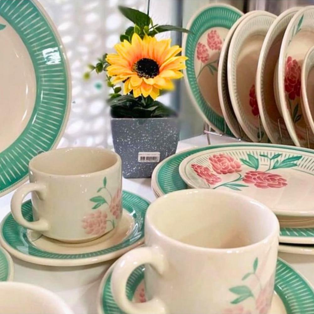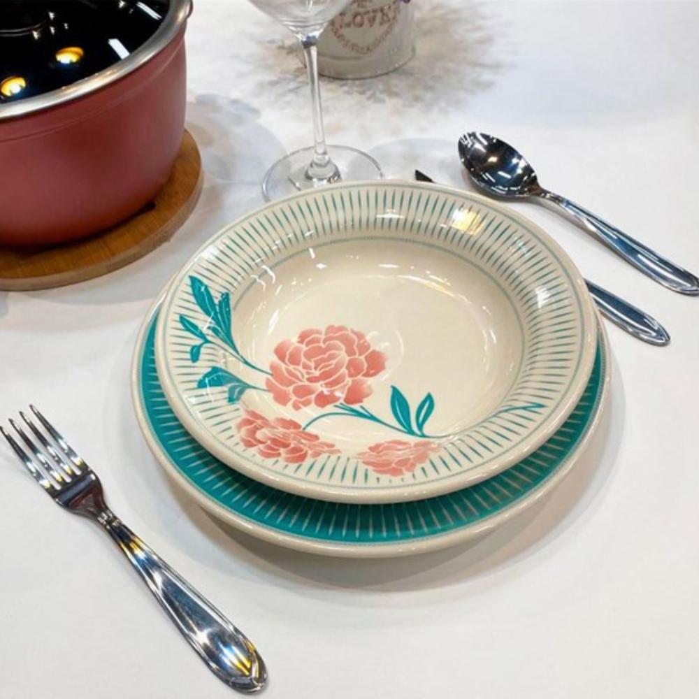 Jogo de Jantar 20 Peças Cerâmica Chá Bloom Biona