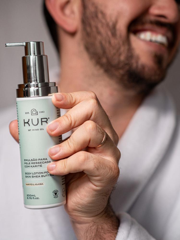 Emulsão com Karité para Pele Ressecada - 200ml A Emulsão com Karité para Pele Ressecada da Kur My Home Spa é um creme de alta hidratação, desenvolvido com manteiga de karité - ativo ideal para peles extremamente ressecadas, pois retém a umidade natural da pele e ajuda na sua elasticidade. A Emulsão protege e hidrata a pele, além de possuir propriedades emolientes, umectantes e cicatrizantes. É indicado para todos os tipos de pele. Benefícios: É livre de parabenos e de óleo mineral, evitando males a longo prazo. Contém hidratantes que auxiliam no aumento da flexibilidade cutânea, como Vitamina B5, Vitamina E, glicerina vegetal, óleo de amêndoas doce e óleo de jojoba. Modo de uso: Espalhe por todo o corpo após o banho, fazendo movimentos suaves e circulares, com atenção especial às áreas de pele mais seca, como joelhos e cotovelos. Quantidade: 200ML Ingredientes: Aqua, Glycerin, Caprylic/ Capric Triglyceride, Glyceryl Stearate SE, Botyrospermum Parkii Butter, Ceteareth-20, Urea, Prunus Amygdalus Dulcis Oil, Cetearyl Alcohol, Panthenol, Simmondsia Chinensis Seed Oil, Tocopheryl Acetate, Phenoxyethanol, Parfum, Caprylyl Glycol, Acrylates/C10-30 Alkyl Acrylate Crosspolymer, Benzotriazolyl Dodecyl p-Cresol, Aminomethyl Propanol, BHT, Disodium EDTA, Coumarin, Linalool, Hexyl Cinnamal.