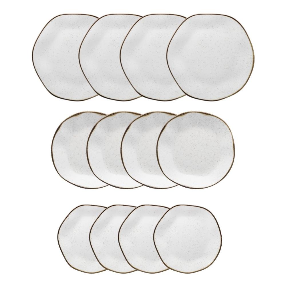 Jogo de Pratos 12 Peças Porcelana Maresia Orgânico Oxford