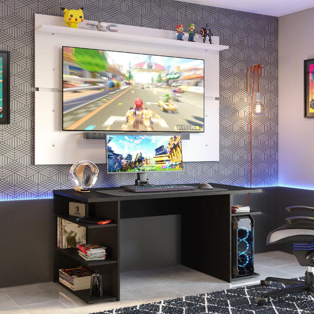 Mesa para Computador Gamer e Painel TV Madesa - Preto/Branco