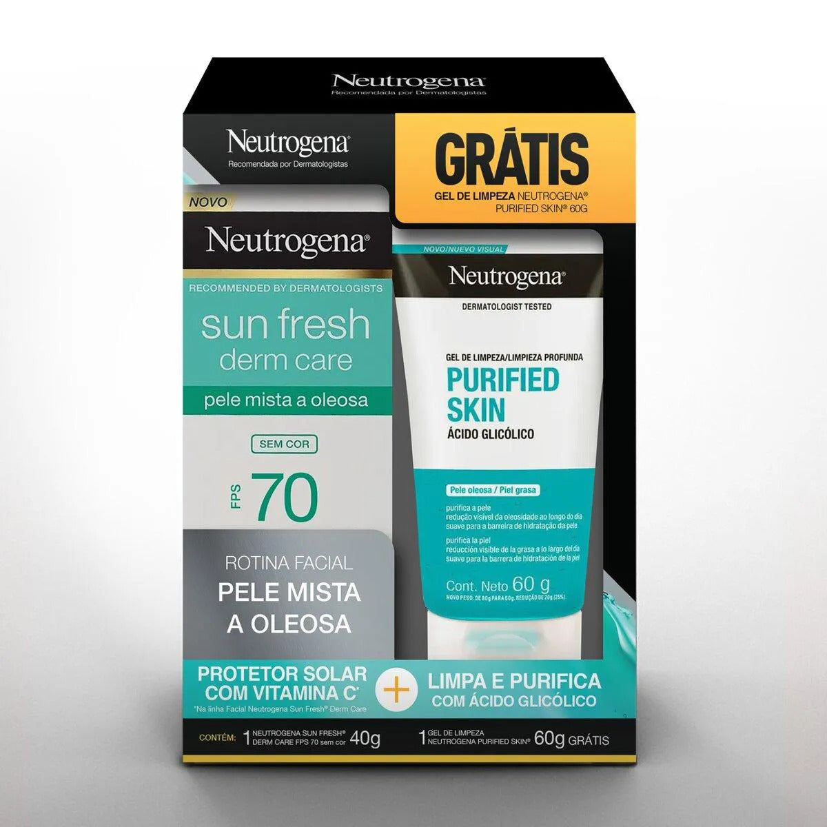 Kit Neutrogena Facial Protetor Solar Sun Fresh Derm Care Fps 70 Sem Cor 40g + Gel de Limpeza Purified Skin 60g