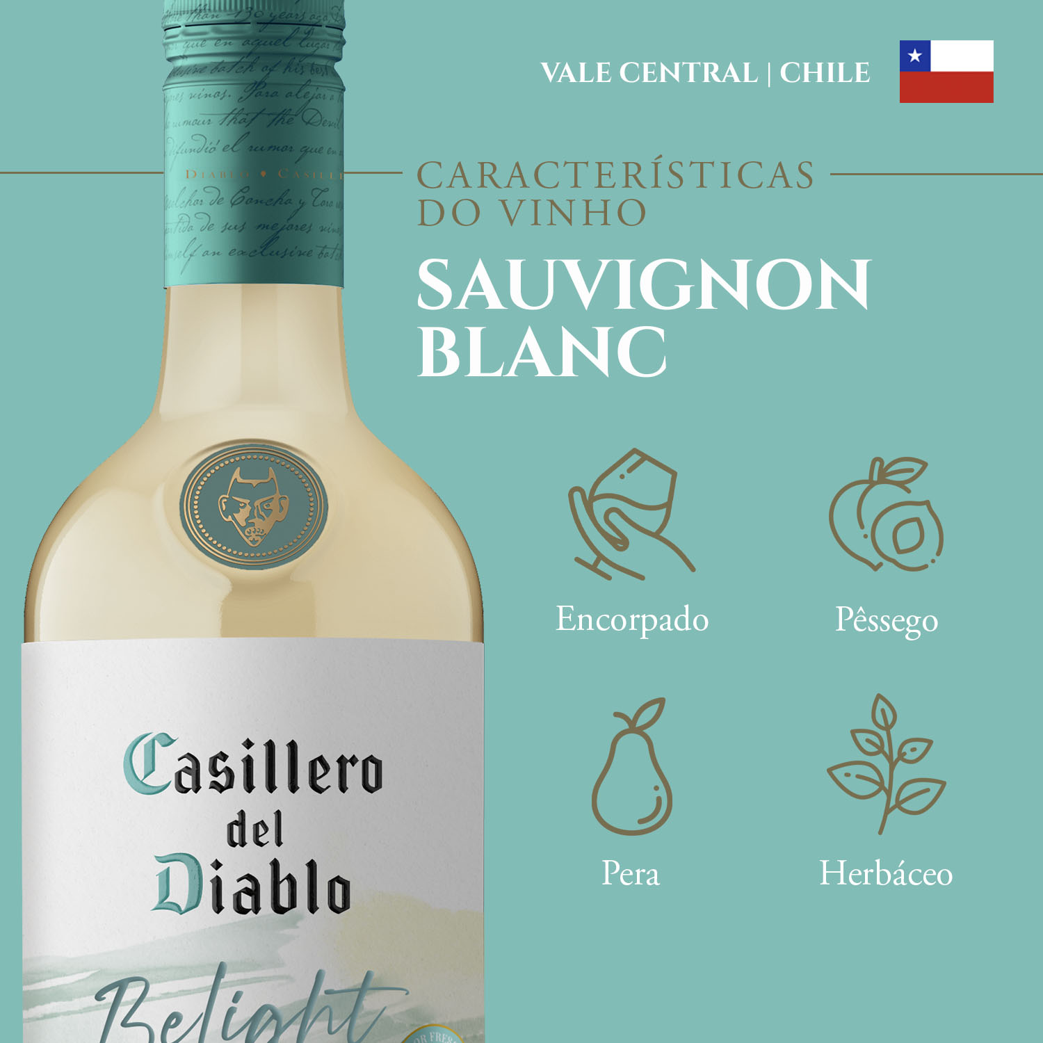 Reserva Belight Sauvignon Blanc: leve, refrescante e cheio de saborCom apenas 52 calorias por taça, este Sauvignon Blanc da linha Reserva Belight oferece uma leveza que encanta, mantendo todo o frescor e o perfil clássico da uva. Sua cor clara e vibrante convida a uma experiência refrescante e delicada.No aroma, pêssego, pera e notas herbáceas se combinam em uma fragrância leve e perfumada, que traz frescor e sutileza para o paladar. A acidez rica e equilibrada entrega um sabor cítrico vibrante, que permanece do primeiro ao último gole.A linha Belight é feita para quem busca mais leveza no dia a dia, sem abrir mão da qualidade e da essência marcante dos vinhos Casillero del Diablo.Harmonização perfeita: acompanha peixes e mariscos frescos, elevando refeições leves com sofisticação, sabor e praticidade.A suavidade da marca Casillero Del Diablo Reserva BelightO vinho Belight Sauvignon Blanc é leve, refrescante e com menos calorias, sem abrir mão da elegância e do sabor da Casillero del Diablo.Leveza que encanta.Apenas 52 calorias por taça, mantendo todo o frescor e o perfil clássico do Sauvignon Blanc da Casillero del Diablo.Aromas delicados e frescos.Pêssego, pera e notas herbáceas se combinam em uma fragrância leve, perfumada e agradável ao nariz.Vibrante e equilibrado.Com acidez rica em detalhes, este vinho entrega um sabor cítrico e refrescante do primeiro gole até o último.Harmonização descomplicada.Ideal para acompanhar peixes e mariscos frescos, elevando refeições leves com sofisticação e muito sabor.Equilíbrio Belight.A linha que traz mais leveza no seu dia a dia, mantendo a qualidade e a essência marcante dos vinhos Casillero del Diablo.Características:- Uvas Sauvignon Blanc- Aromas de pêssego, pera e notas herbáceas- Harmoniza com peixes e mariscos frescosInformações Técnicas:- Volume: 750 ml- Tipo de vinho: Branco- Uva: Sauvignon Blanc- Origem: Chile