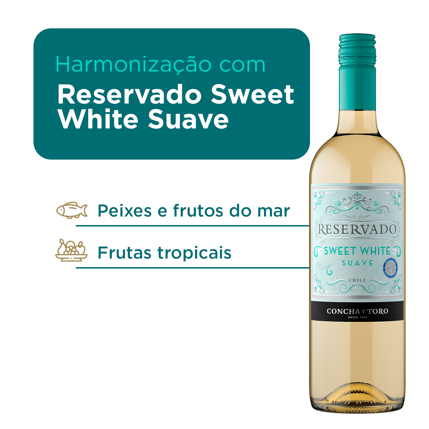 KIT 3 UNIDADES Reservado Sweet White: tropical, leve e suavemente doceDe cor clara e brilhante, com um amarelo pálido e reflexos esverdeados, o Reservado Sweet White revela leveza e frescor desde o primeiro gole. Esse vinho apresenta uma aparência vibrante que convida a uma experiência refrescante e delicada.No aroma, destacam-se notas elegantes de frutas tropicais maduras, com ênfase envolvente no abacaxi, que conferem um perfil aromático doce e cativante. No paladar, o vinho é suave e equilibrado, com sabor adocicado que se harmoniza perfeitamente com sua acidez, prolongando o frescor e a presença frutada a cada gole.A linha Reservado Spritzer traduz a qualidade e o espírito casual da Concha y Toro, trazendo vinhos que combinam frescor e suavidade para diversas ocasiões.Harmonização perfeita: acompanha sobremesas leves, como papaias em calda, cremes doces e aperitivos com frutas tropicais, realçando momentos doces e descontraídos.