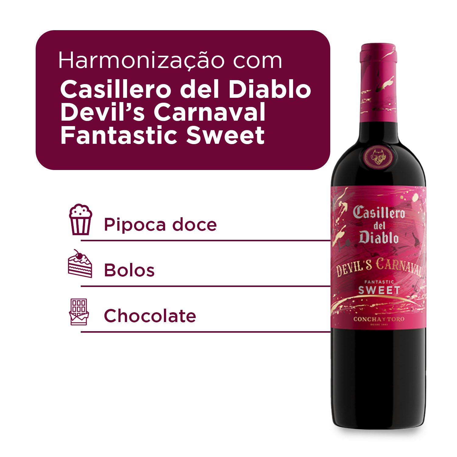 KIT UNIDADES1 Casillero del Diablo Devil's Carnaval Vinho Tinto Chileno Fabulous Red 750 m 750 ml1 Casillero del Diablo Devil's Carnaval Vinho Branco Chileno Phenomenal Sauvignon 750 mlDevil's Carnaval Fabulous Red: intensidade, frescor e personalidadeCom cor vibrante e intensa, esse blend Fabulous Red revela o estilo único e a personalidade marcante da linha Devil's Carnaval. Aromas fabulosos de ameixa criam uma experiência olfativa frutada, complexa e inesquecível, que convida a descobrir cada camada de seu perfil aromático.No paladar, apresenta textura macia e equilibrada, com taninos delicados e um final persistente, agradável e cheio de charme, que envolve e surpreende a cada gole.Casillero del Diablo Devil's Carnaval transforma qualquer ocasião em um brinde inesquecível, perfeito para momentos descontraídos e celebrações especiais entre amigos, onde a alegria e o sabor caminham juntos.Harmonização perfeita: acompanha massas ao molho vermelho, hambúrgueres suculentos e pratos à base de carne vermelha, tornando-se uma companhia deliciosa para diversas ocasiões sociais e gastronômicas.Devil's Carnaval Phenomenal Sauvignon: frescor, leveza e muito saborCom cor clara e brilhante, seus reflexos esverdeados antecipam a leveza e o frescor encantador do Phenomenal Sauvignon, trazendo uma aparência vibrante e convidativa que destaca sua personalidade refrescante.No aroma, notas cítricas e tropicais se combinam harmoniosamente, formando um conjunto fresco e irresistível que desperta os sentidos e convida a um momento de pura apreciação.Casillero del Diablo Devil's Carnaval transforma qualquer ocasião em um brinde inesquecível, perfeito para momentos descontraídos e celebrações especiais entre amigos, onde a alegria e o sabor caminham juntos.Harmonização perfeita: combina especialmente com peixes frescos, frutos do mar e aperitivos fritos, como coxinhas e pastéis, ideal para tardes de verão repletas de sabor e descontração.