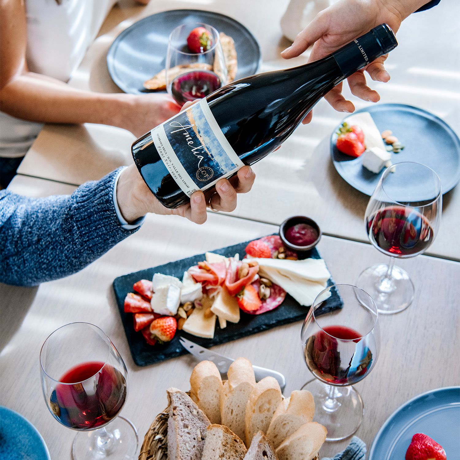 1 Amelia Chardonnay: fresco, mineral e eleganteCom coloração amarelo claro e brilhante, este Chardonnay revela pureza, frescor e elegância logo na primeira taça. É um vinho branco seco e sofisticado, perfeito para momentos que pedem leveza e personalidade.No nariz, destacam-se aromas elegantes de flores brancas, pera fresca e pederneira, que conferem delicadeza e frescor ao conjunto. Em boca, apresenta textura fina, acidez equilibrada e um final salino e persistente, com mineralidade marcante.A linha Amelia reflete um cuidado minucioso no vinhedo e na adega, traduzindo a harmonia entre a natureza e a técnica na produção de vinhos de alta qualidade.Harmonização perfeita: peixes, frutos do mar e queijos cremosos como Brie e Camembert, que valorizam sua versatilidade e elegância.1 Amelia Pinot Noir: leve, fresco e eleganteCom coloração vermelho rubi claro e brilhante, este Pinot Noir expressa frescor e juventude desde a primeira taça. É um tinto seco e delicado, ideal para quem busca elegância e sutileza.No aroma, apresenta notas em camadas de cereja vermelha, folhas de chá preto e um leve toque mineral, que conferem sofisticação e complexidade ao vinho. Em boca, revela textura macia, acidez equilibrada e um final longo, persistente e elegante, com destaque para o frescor e nuances minerais.A linha Amelia reflete um cuidado minucioso no vinhedo e na adega, traduzindo a harmonia entre a natureza e a técnica na produção de vinhos de alta qualidade.Harmonização perfeita: charcutaria, risoto de funghi porcini e vegetais grelhados, como abobrinha e berinjela, que complementam sua versatilidade e frescor.