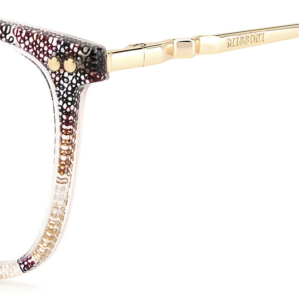 A coleção de Tecido Missoni celebra a rica tradição da marca, integrando padrões exclusivos em frentes de acetato para conferir uma atitude instantânea, fresca e feminina. Os óculos ópticos se destacam pela silhueta retangular atemporal, adornada com rebites de metal.Além disso, suas hastes finas de metal apresentam charneiras icônicas em ziguezague, enquanto as ponteiras de acetato são elegantemente coladas em um padrão ziguezague: uma incorporação suave dos códigos de estilo exclusivos da Missoni. Marca: MissoniModelo: Mis 0085 Q5T 5315Linha: Armação de ÓculosColeção: Missoni DnaGênero: FemininoFormato: RetangularMateriais da Armação: Acetato - Acetato Long TipCores da Armação: Vermelho Cherry Pattern - DouradoTipo de Lente: Demonstrativa - Sem GraduaçãoTamanho da Lente: 53 mmAltura da Lente: 41,0 mmTamanho da Haste: 140 mm Tamanho da Ponte: 15 mmBase da Lente: Base 4 EsféricaGarantia: 12 meses pelo fabricante:"