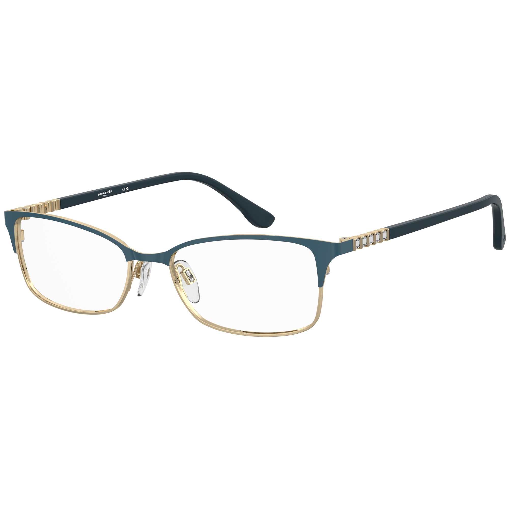 Pierre Cardin oferece óculos de estilo atemporal, com design único e materiais de alta qualidade que garantem leveza e durabilidade.Marca: Pierre CardinTipo: Armação de ÓculosModelo: P.C. 8924 5F6Linha: Jewellery And GemsGênero: FemininoFormato: RetangularMateriais da Armação: Metal - MetalCores da Armação: Azul Teal - DouradoTipo de Lente: Demonstrativa - Sem GraduaçãoTamanho da Lente: 52 mmAltura da Lente: 31,8 mmTamanho da Haste: 140 mmTamanho da Ponte: 16 mmBase da Lente: Base 4 EsféricaFitting: InternationalEspecificações do Produto Modelo Pierre Cardin que combina luxo discreto e conforto.Os detalhes em strass nas laterais acrescentam brilho elegante, enquanto a frente esmaltada sem aro é leve e confortável.As ponteiras em acetato trazem o monograma da marca e as hastes ajustáveis garantem encaixe personalizado.Compatível com lentes progressivas.Garantia do Fabricante:"