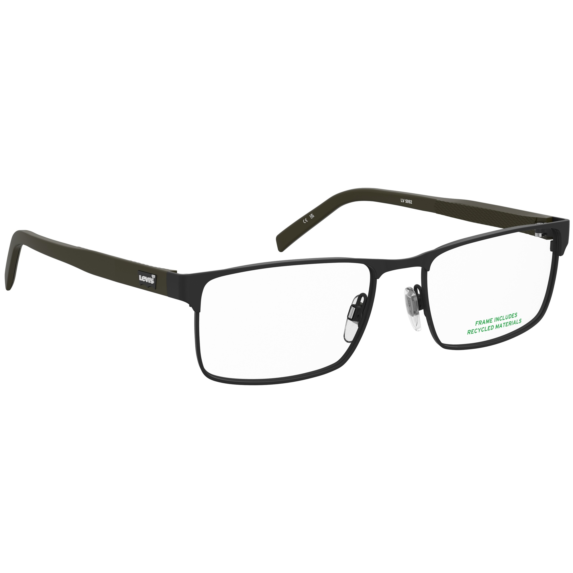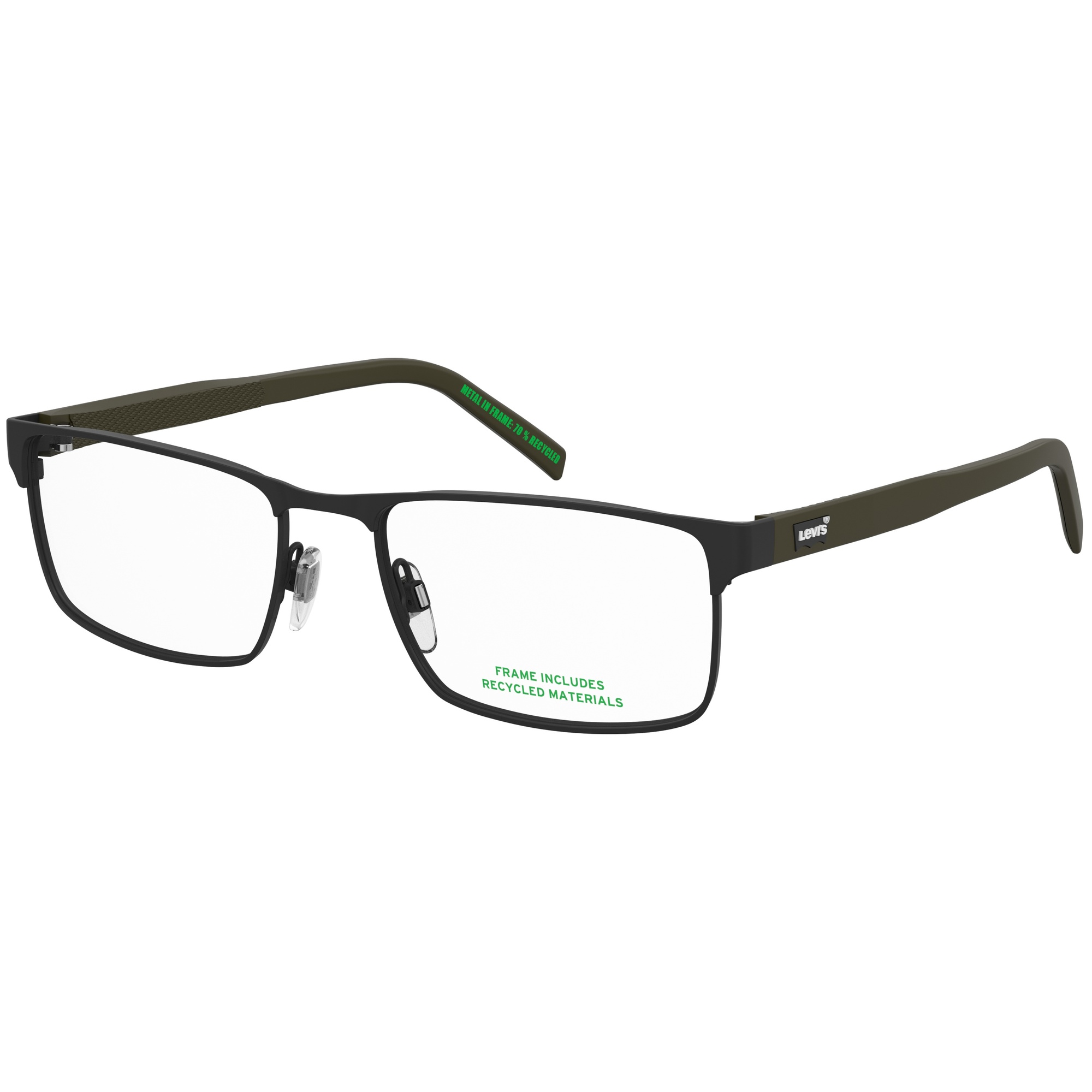 Óculos Levi’s unem estilo urbano e autenticidade, com design moderno e conforto para o dia a dia.Marca: LevisTipo: Armação de ÓculosModelo: Lv 5092 003Linha: Sporty LeisureGênero: Masculino AdultoFormato: RetangularMateriais da Armação: Metal - Celulose EcológicaCores da Armação: Preto Fosco - VerdeTipo de Lente: Lente Demonstrativa - Sem GraduaçãoTamanho da Lente: 56 mmAltura da Lente: 36,0 mmTamanho da Haste: 145 mmTamanho da Ponte: 18 mmBase da Lente: Base 4 EsféricaFitting: InternationalEspecificações do Produto Inspirados no sportswear, esses óculos masculinos Levi’s® possuem design confortável e fácil de usar. A paleta de cores e o logo Batwing emborrachado refletem o estilo urbano casual. Referências ao jeans Levi’s® aparecem nos rebites frontais e na textura das hastes, inspirada no denim. Sustentáveis e práticos, são feitos com materiais recicláveis e renováveis..Garantia do Fabricante