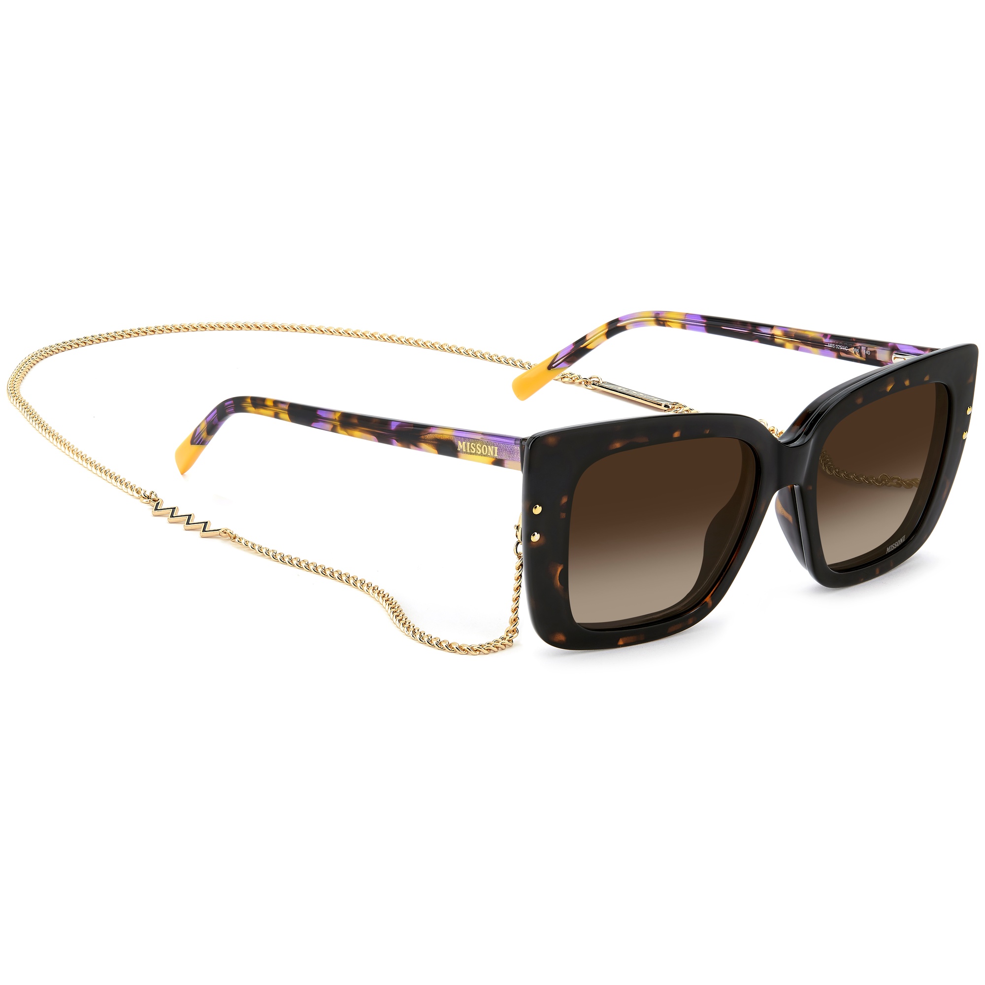 Óculos Missoni traduzem elegância italiana com cores vibrantes, design sofisticado e conforto exclusivo.Marca: MissoniTipo: Armação de Óculos Clip OnModelo: Mis 0251/C 086Linha: Missoni SeasonalGênero: FemininoFormato: QuadradoMateriais da Armação: Poliamida - AcetatoCores da Armação: Marrom Havana - VioletaTipo de Lente: Clip On Marrom Degradê Polarizado - UVA UVB 100%Tamanho da Lente: 55 mmAltura da Lente: 45,5 mmTamanho da Haste: 140 mmTamanho da Ponte: 16 mmBase da Lente: Base 4 EsféricaFitting: InternationalEspecificações do Produto Este modelo híbrido da coleção Missoni Seasonal une elegância e versatilidade em uma estrutura feminina de acetato sólido e estampado.O sistema clip-on permite transformar facilmente de óculos óptico em solar.As ponteiras coladas e a corrente metálica com o icônico detalhe em zig zag garantem o acabamento exclusivo da marca.Garantia do Fabricante:"