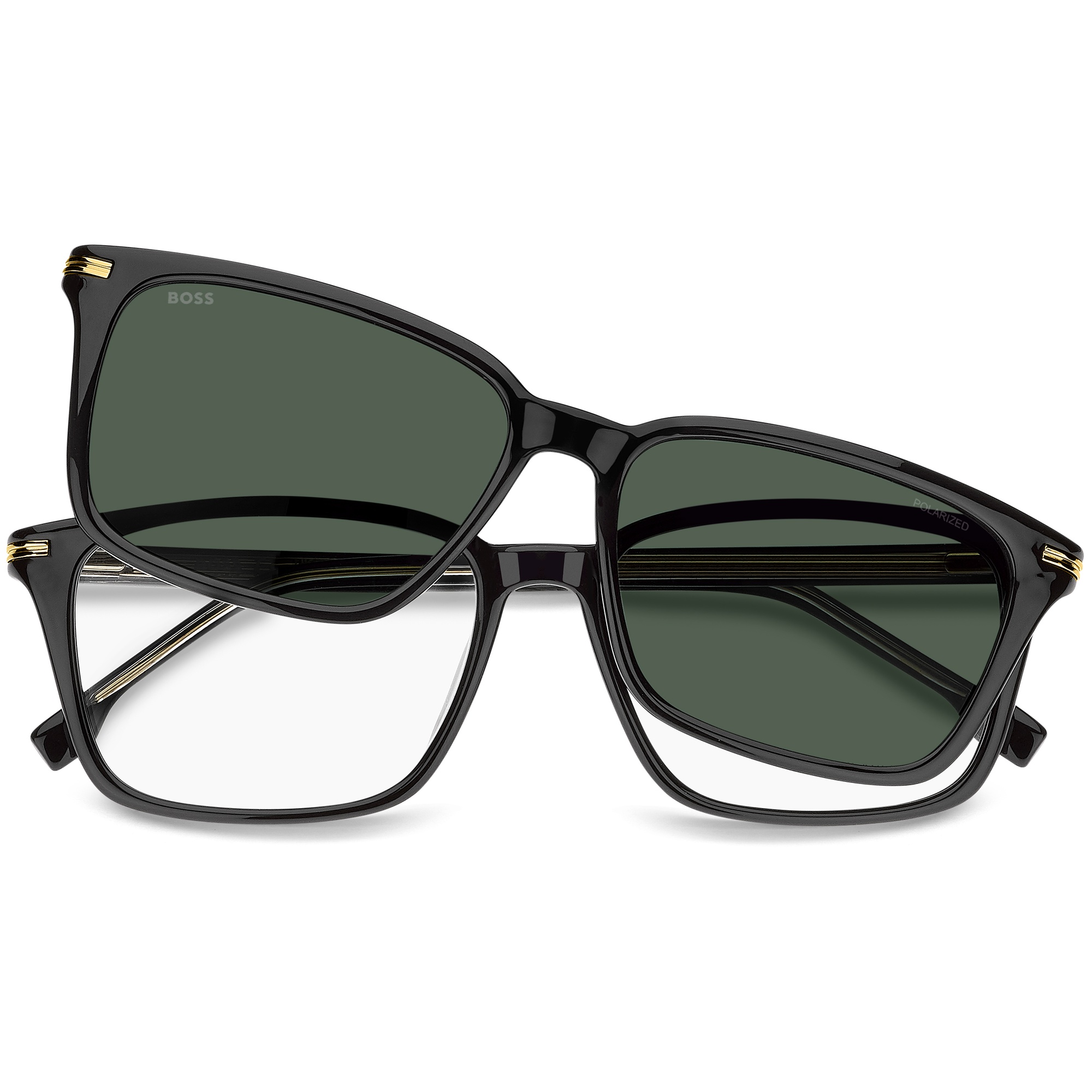 Hugo Boss oferece óculos elegantes e versáteis, com materiais premium e design refinado, combinando classe e sofisticação para todos os estilos.Marca: Hugo BossTipo: Armação de Óculos Clip OnModelo: Boss 1847/G/C 807Linha: Style & ExpressionGênero: MasculinoFormato: QuadradoMateriais da Armação: Poliamida Ecológica - Acetato EcológicoCores da Armação: Preto - PretoTipo de Lente: Clip On Verde Polarizado - UVA UVB 100%Tamanho da Lente: 55 mmAltura da Lente: 40,4 mmTamanho da Haste: 145 mmTamanho da Ponte: 16 mmBase da Lente: Base 4 EsféricaFitting: Global FittingEspecificações do Produto A Boss apresenta estes óculos de grau produzidos em eco-acetato de alta densidade, com design limpo e moderno.Um modelo best-seller, agora em proporções mais finas e acompanhado por lentes polarizadas de encaixe tipo clip-on.As hastes delgadas trazem um inserto metálico com as três listras da Boss e o logotipo em folha metálica.A paleta de cores refinada inclui opções com o fio metálico visível na parte interna das hastes.O design de ajuste global garante conforto universal.Garantia do Fabricante:"