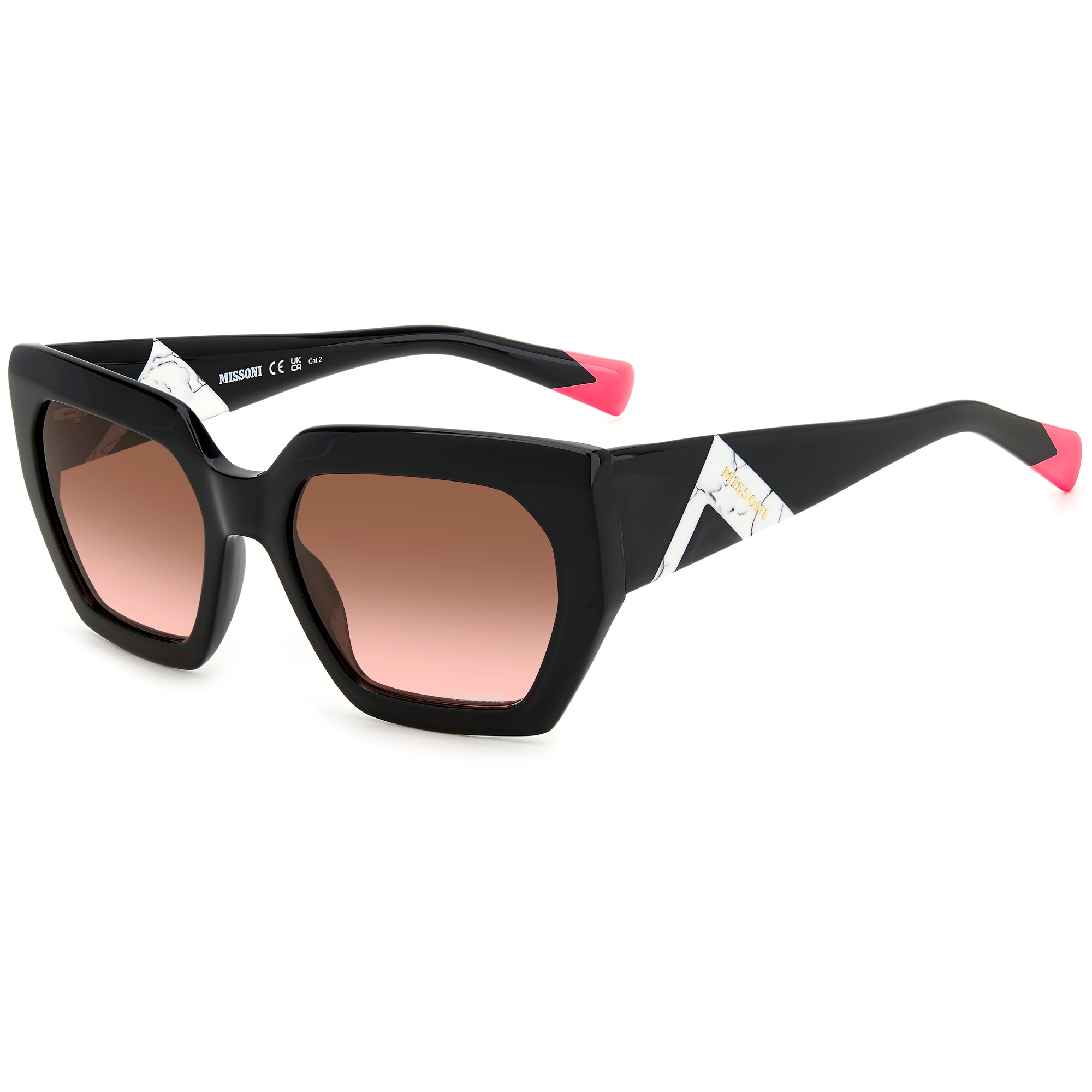 Óculos Missoni traduzem elegância italiana com cores vibrantes, design sofisticado e conforto exclusivo.Marca: MissoniTipo: Óculos de SolModelo: Mis 0170/S 807Linha: Missoni SeasonalGênero: Feminino AdultoFormato: RetangularMateriais da Armação: Acetato - AcetatoCores da Armação: Preto - PretoTipo de Lente: Marrom com Rosa Pink Degradê - UVA UVB 100%Tamanho da Lente: 55 mmAltura da Lente: 41,5 mmTamanho da Haste: 140 mmTamanho da Ponte: 19 mmBase da Lente: Base 4 EsféricaFitting: InternationalEspecificações do Produto A coleção Missoni Seasonal combina tons sólidos com texturas refinadas, criando uma experiência tátil marcante. O modelo retangular com superfícies angulares possui hastes largas com triângulo colado em referência ao zigue-zague da marca. O acabamento inclui logo em hot print e ponteiras exclusivas..Garantia do Fabricante