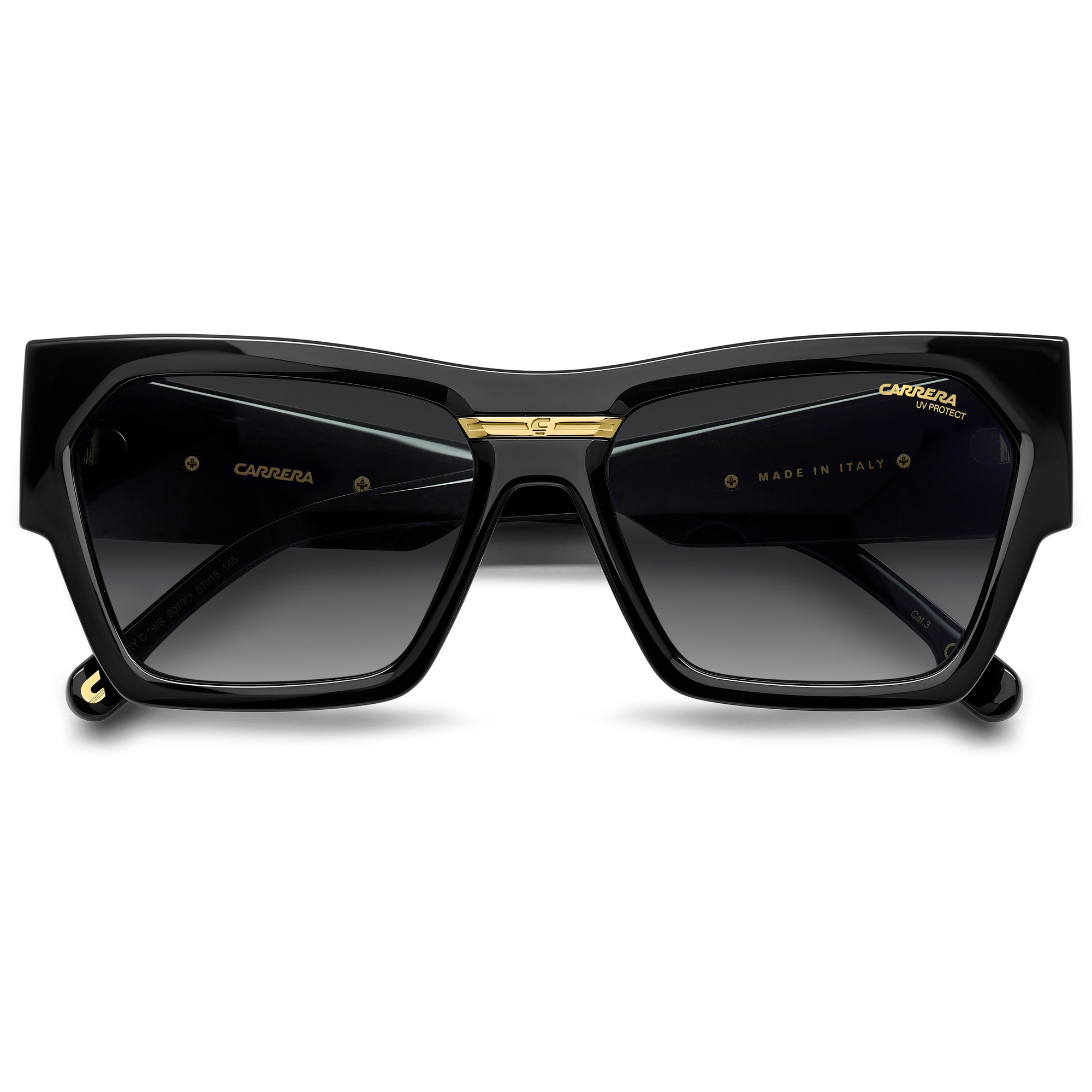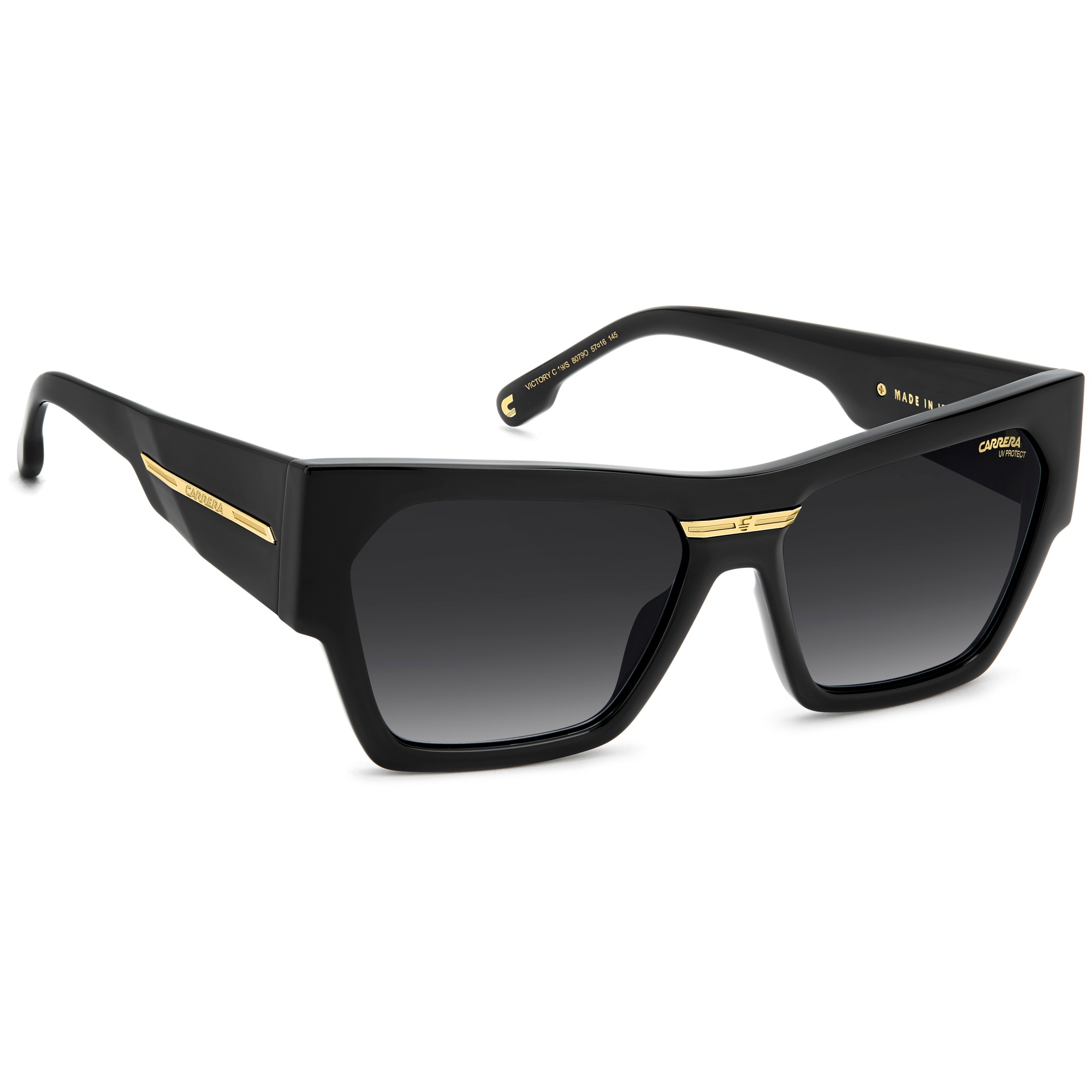 Carrera, fundada em 1956, é referência em design e qualidade, com óculos que inspiram pessoas a viverem de forma única e desafiadora.Marca: CarreraTipo: Óculos de SolModelo: Victory C 19/S 807Linha: FlagGênero: FemininoFormato: RetangularMateriais da Armação: Poliamida Ecológica - Poliamida EcológicaCores da Armação: Preto - PretoTipo de Lente: Cinza Escuro Degradê - UVA UVB 100%Tamanho da Lente: 57 mmAltura da Lente: 43,0 mmTamanho da Haste: 145 mmTamanho da Ponte: 16 mmBase da Lente: Base 4 EsféricaFitting: InternationalEspecificações do Produto Óculos de sol Carrera, fabricados na Itália, com atitude ousada e moderna.O design apresenta frontal em formato cat-eye e hastes oversized — novidade da temporada.O emblema metálico “Victory C” adiciona um toque icônico.Disponíveis em preto e dourado clássico ou em cores sazonais, incluindo opção transparente.Garantia do Fabricante:"
