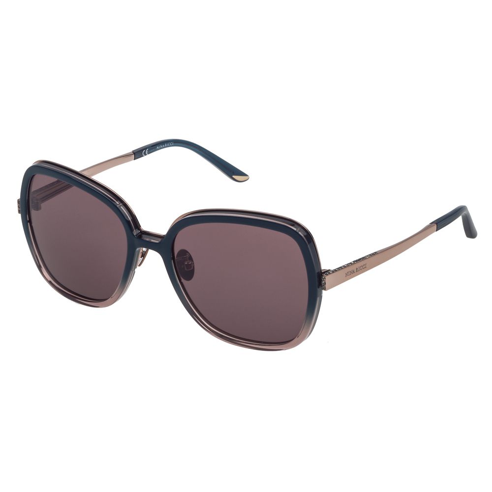 Óculos de Sol Nina Ricci SNR107S - Azul e Violeta 56 - Azul - Feminino - 56 - Quadrado - Metal - Metal