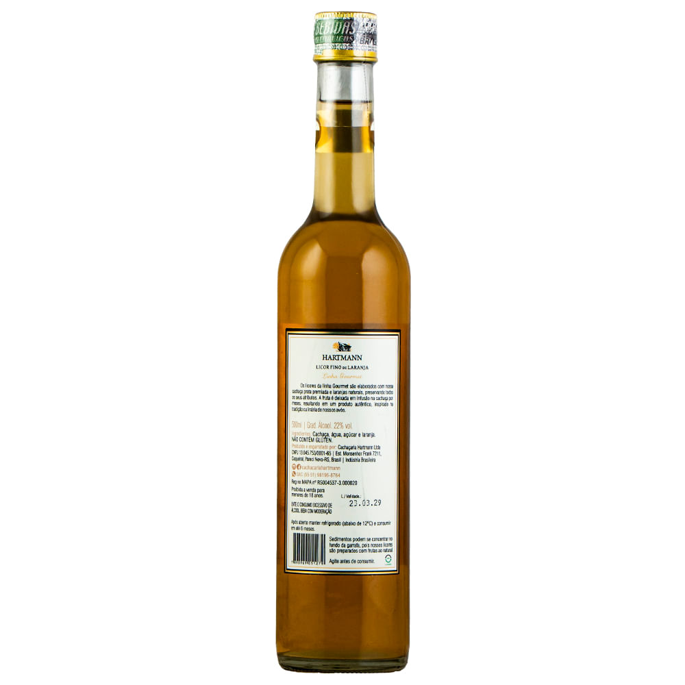Os licores da linha Gourmet são elaborados com a cachaça prata Hartmann premiada e laranjas naturais, preservando todos os seus atributos. A fruta é deixada em infusão na cachaça por meses, resultando em um produto autêntico, inspirado na tradição culinária de seus avós. O licor apresenta 22% de graduação alcoólica. Seus ingredientes são: Cachaça, água, açúcar e laranja. Não contém glúten.