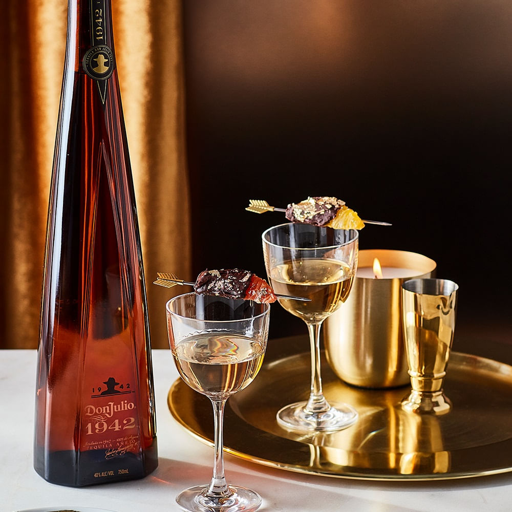Uma experiência de sabor excepcional. Don Julio 1942 é uma tequila de luxo 100% artesanal, inspirada na paixão de Don Julio Gonzalez. É extraordinariamente suave devido ao envelhecimento mais longo e por ser feito de agave azul, selecionado à mão e cultivado de seis à dez anos. Com aromas doces de baunilha, tons de nozes, amêndoas e chocolate combinam com canela exótica e uma leve essência de carvalho. Harmoniza perfeitamente com frutas combinadas com chocolate (como morangos, pera, uva).