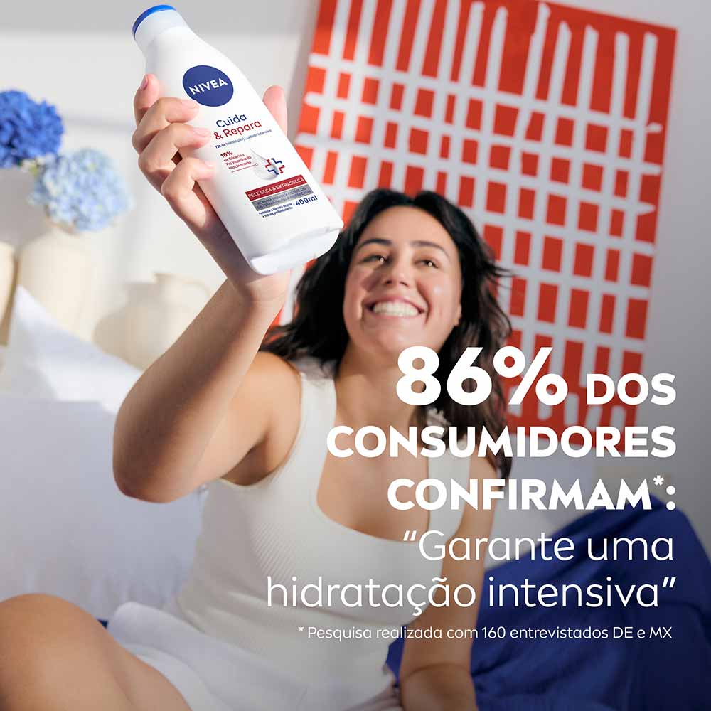 NIVEA Hidratante Corporal Cuida & Repara garante um cuidado intensivo para pele seca a extrasseca, especialmente desenvolvido para oferecer 72 horas de hidratação profunda.