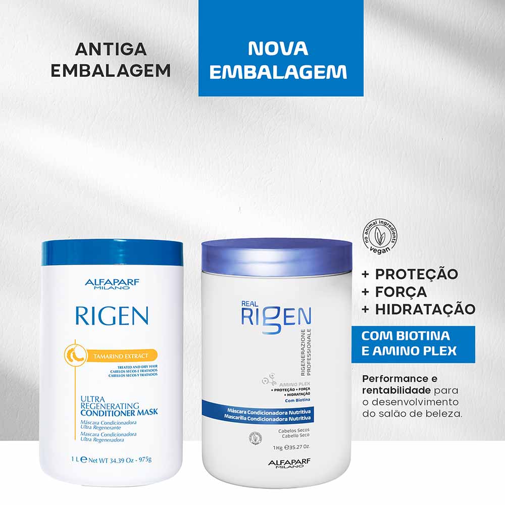 Conheça a Alfaparf Milano Real Rigen Máscara Nutritiva, um tratamento capilar inovador e vegano, perfeito para quem busca regeneração intensa e imediata dos fios. Especialmente formulada para cabelos normais ou secos, esta máscara faz parte da nova geração da clássica linha Alfaparf Milano, agora renovada para atender às expectativas das novas gerações que procuram produtos eficazes, conscientes e fáceis de usar. Ideal para uso diário, a Real Rigen Máscara Nutritiva é a escolha certa para quem deseja cuidar dos cabelos de forma prática e eficiente.
