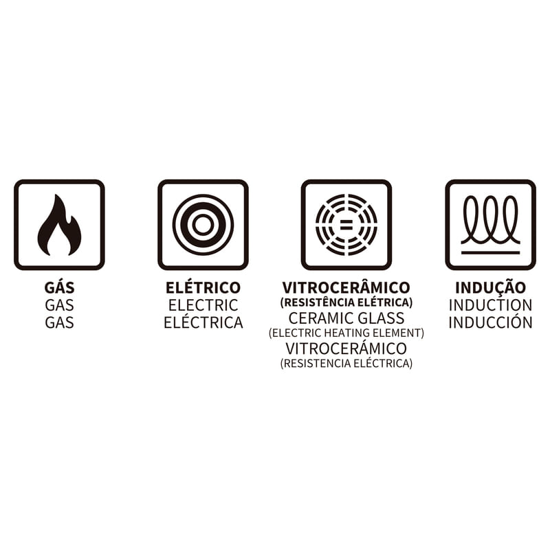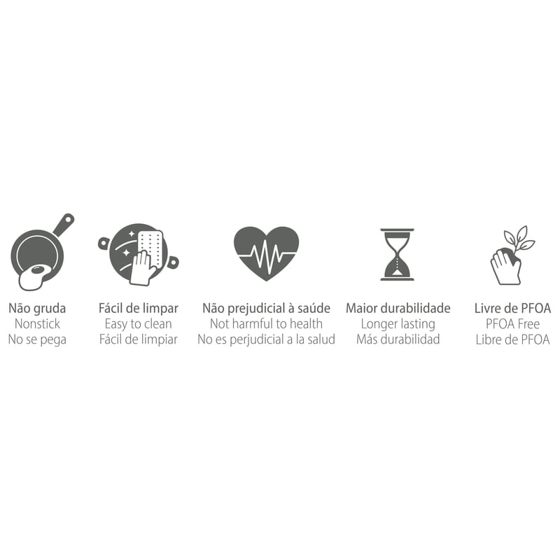 Corpo de alumínio forjado com espessura de 8,0 mm que proporciona cozimento rápido e uniforme.