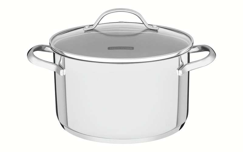 Caçarola Funda Tramontina Uma Inox Fundo Triplo e Tampa de Vidro 24cm 6,1L