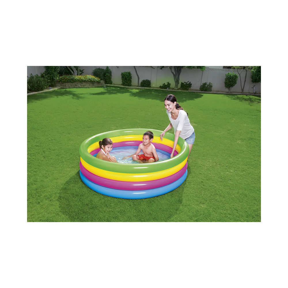 Descrição do Produto: PISCINA INFLÁVEL 4 GOMOS 522 LITROS - Dimensões da Peça: 1,50m x 1,50m x 40cm / Capacidade: 552 Litros - Tipo de Embalagem: Caixa litografada - Dimensões da Embalagem: 30 x 7,5 x 30cm - Quantidade Master: 6 Peças - Dimensões Master: 47,5 x 31 x 31,5cm - Material: PVC (Policloreto de Vinil) - Cor: Colorido - Marca: Bestway - Origem: China - Contém: 1 unidade - Características: • Possui adesivo para pequeno reparo. - Atenção: • Este brinquedo deve ser montado por um adulto ante de ser entregue e criança. • Produto Indicado para crianças maiores de 2 anos de idade. • Para evitar o perigo de asfixia, manter a embalagem longe do alcance das crianças. • Utilizar sob supervisão de um adulto. - Antes do uso: • Infle o produto. • Verificar se o produto está em perfeitas condições de uso. - Perigos: • Cuidado durante o manuseio do produto para evitar acidentes. - Cuidados: • Evite o contato com objetos cortantes. - Advertência/Atenção: • Manter fora do alcance das crianças. • Não encher com aparelhos de alta pressão. • Supervisionar a criança durante o uso. - Sac Fornecedor: • Sac: 0800 607 1322 • Email: posvendas@etilux.com.br • Site: www.etilux.com.br - Garantia: • Em condições normais de uso, este produto tem garantia de 90 dias contra defeitos de material e fabricação, mediante apresentação da nota fiscal de compra. Má conservação, manuseio inadequado, quedas ou quaisquer outras avarias produzidas pelo uso incorreto, a garantia oferecida perde a validade.