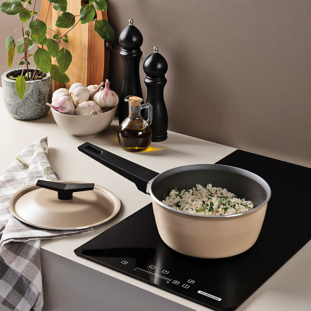 A Panela Tramontina Spezia Induction, 20 cm e cor Areia, otimiza sua cozinha. Prepare refeições com eficiência e limpe com facilidade.