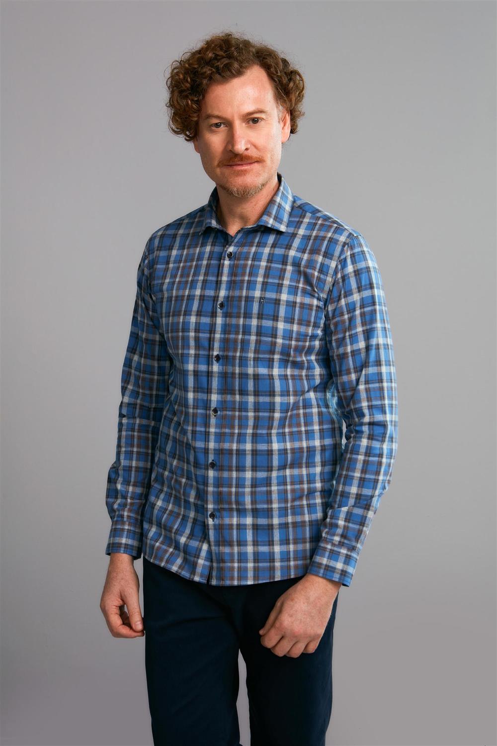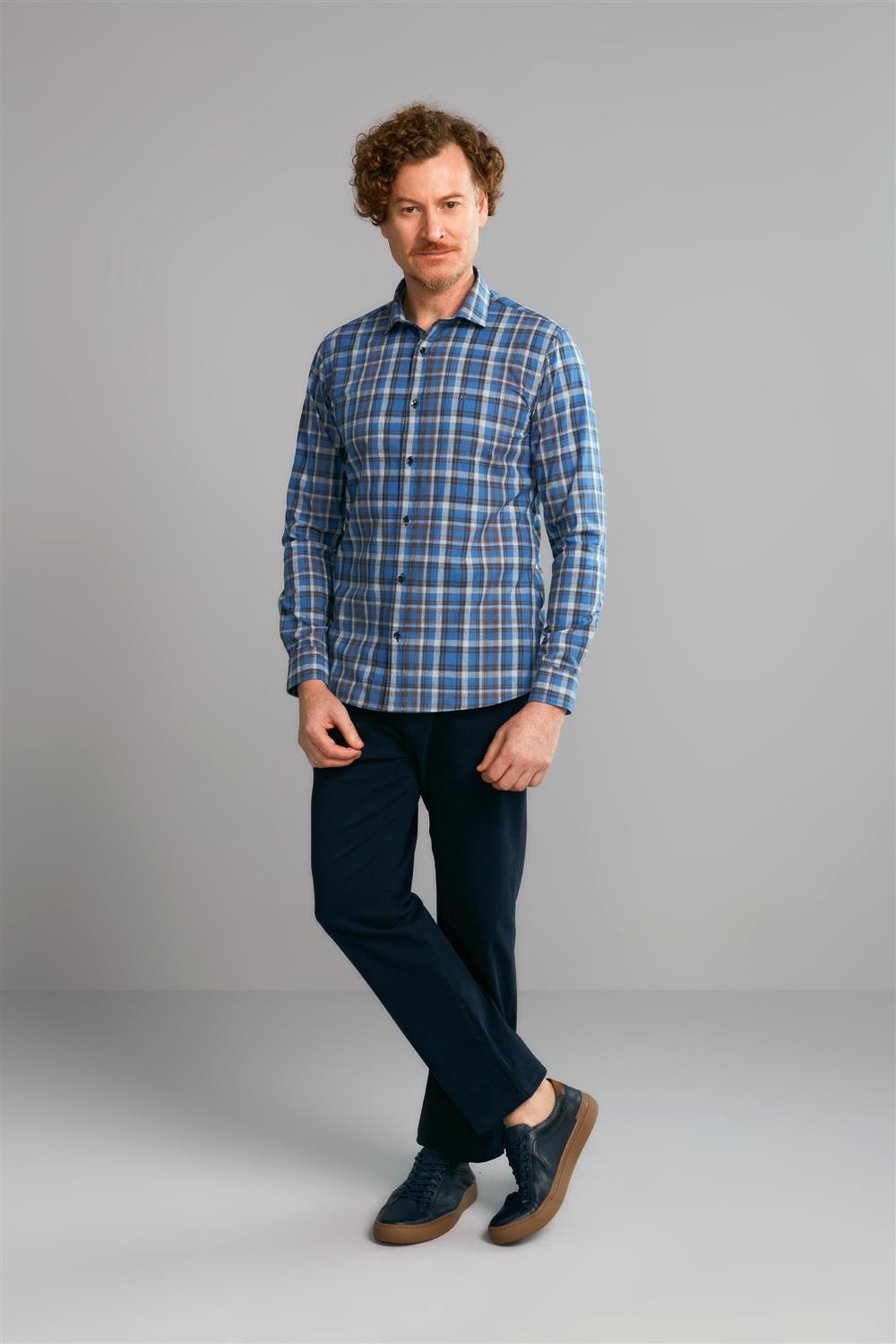 Camisa Manga Longa Xadrez Slim Fit - Azul Medio