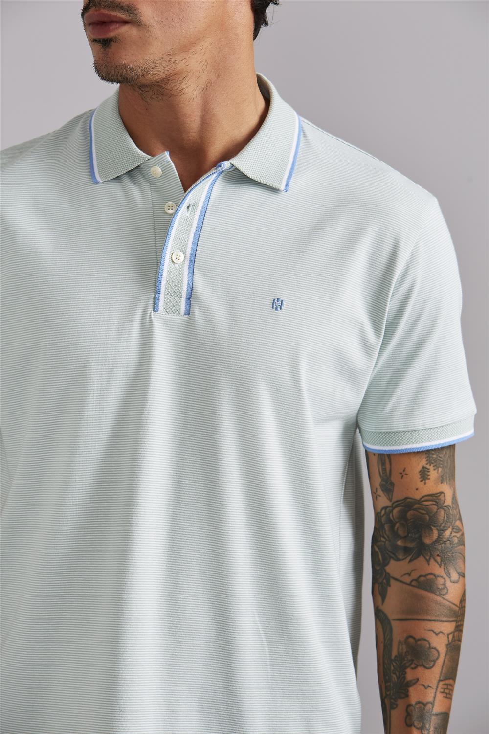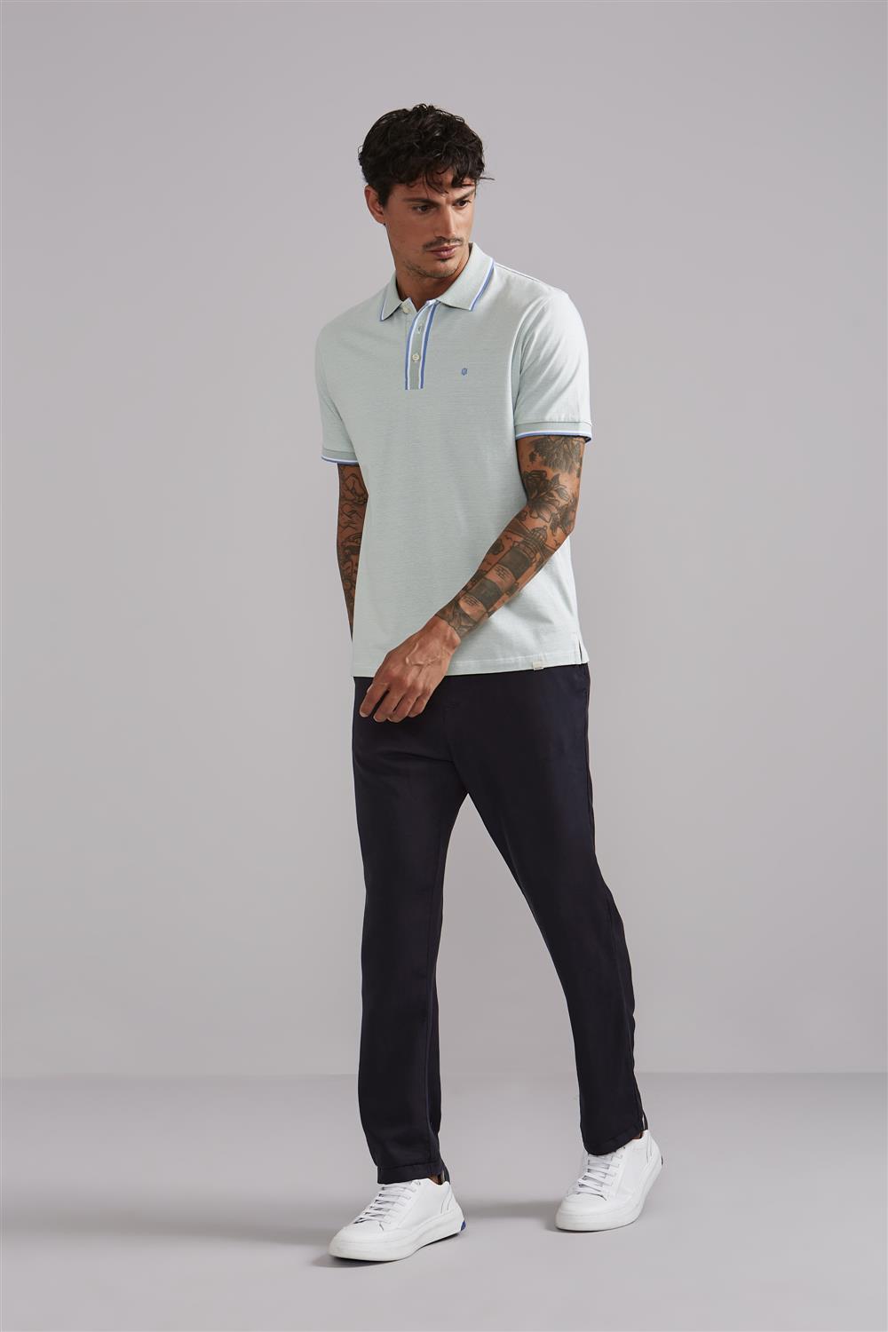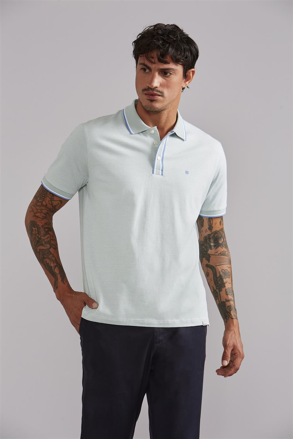 Camisa Polo Comfort Malha - Verde Água / Branco