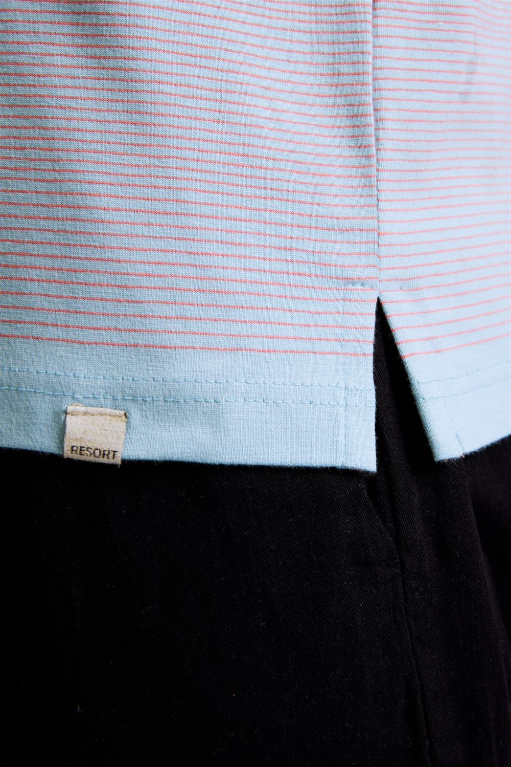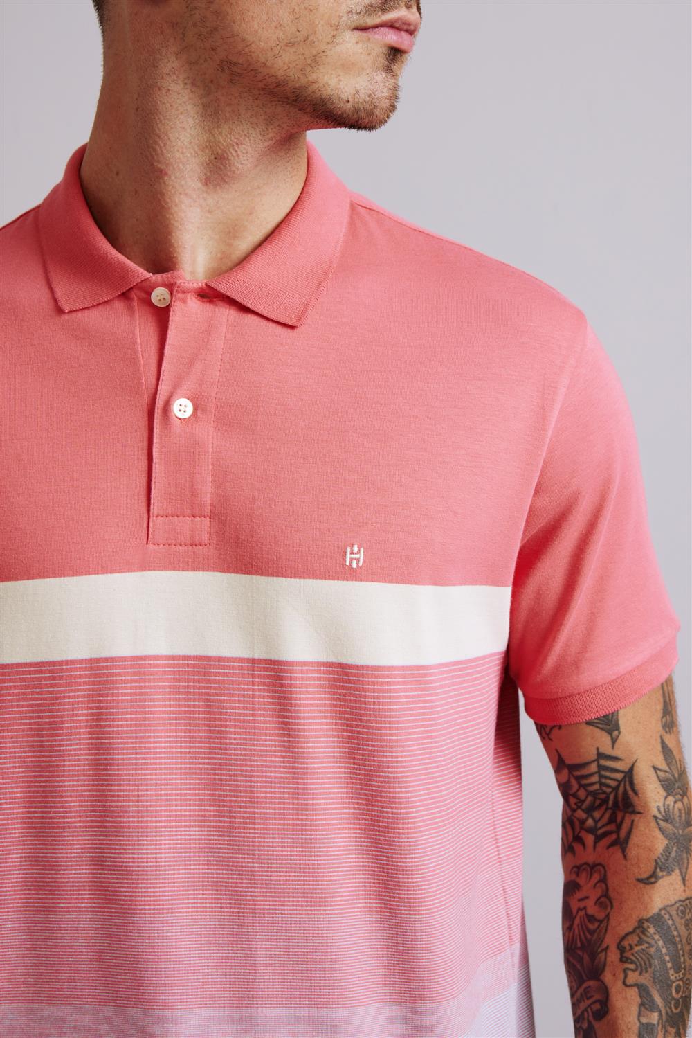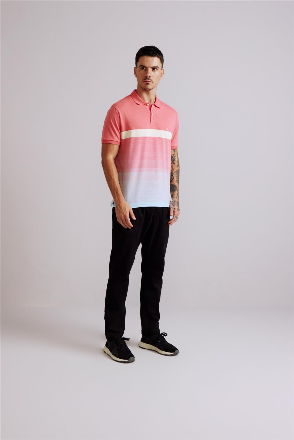 Camisa Polo Comfort Malha - Rosa Salmão / Azul Céu