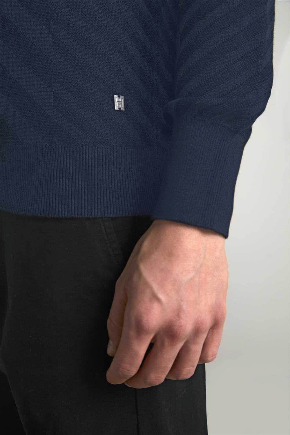 O produto possuí a gola em formato careca, sendo uma forma de gola redonda e justa ao redor do pescoço, sem nenhuma abertura ou decote adicional. A gola careca é uma opção clássica e versátil que é bastante encontrada em camisetas e tricots. Produzido em Jacquard, onde a trama resulta em um desenho na malha, possibilitando a criação de inúmeras padronagens. Sua característica mais importante é a durabilidade, visto que o entrelaçamento dos fios é mais complexo tornando-o mais resistente.