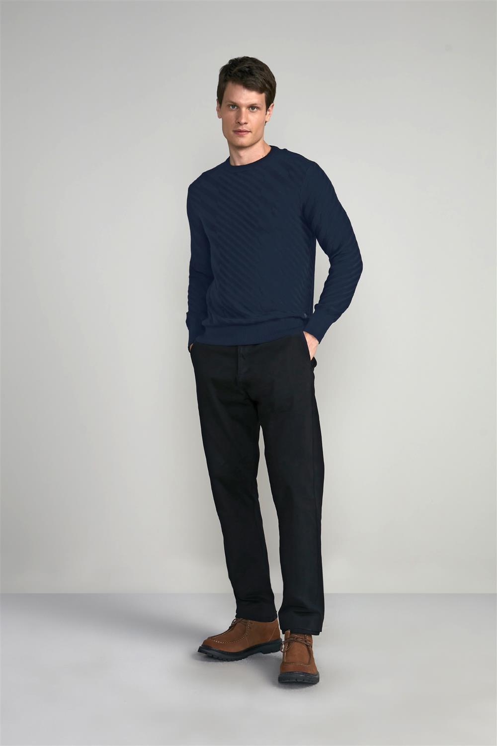 O Tricot Gola Careca Jacquard é confeccionado em 50% Algodão e 50% Liocel.