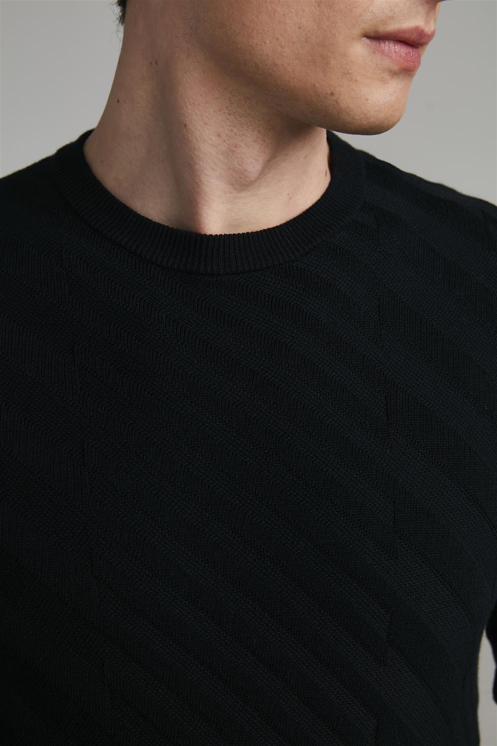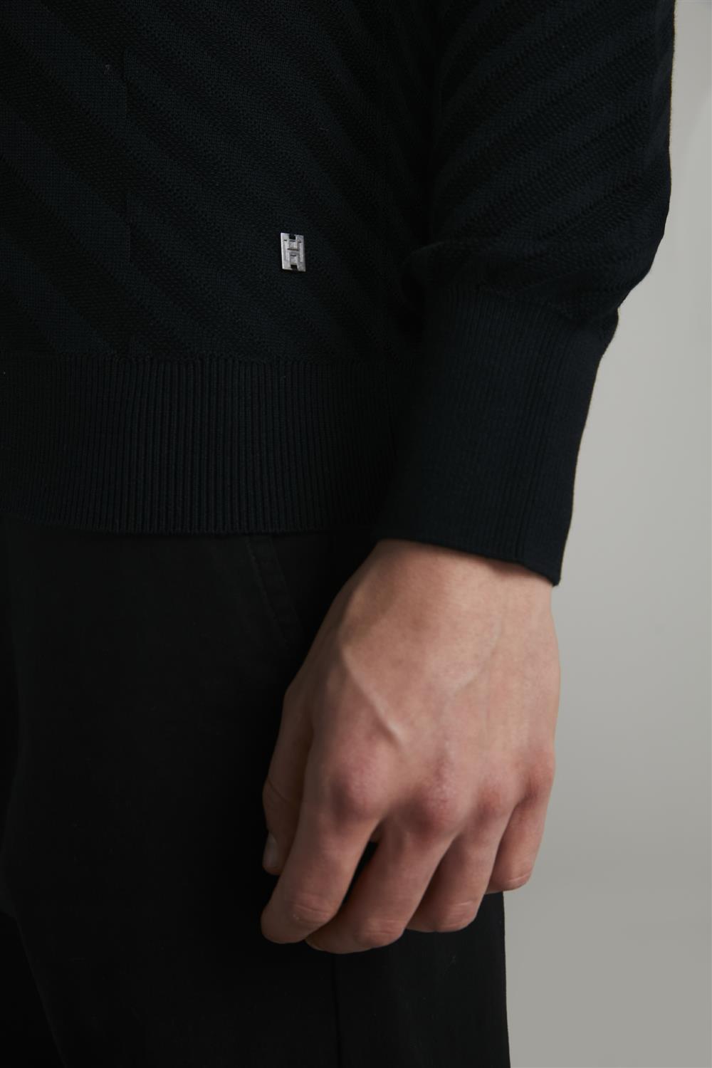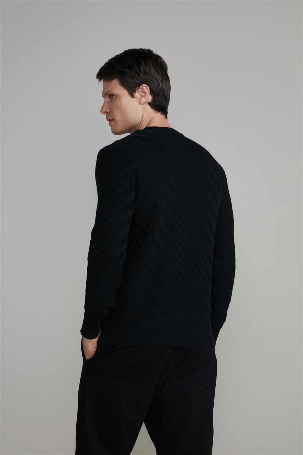 Tricot Gola Careca Jacquard - Preto