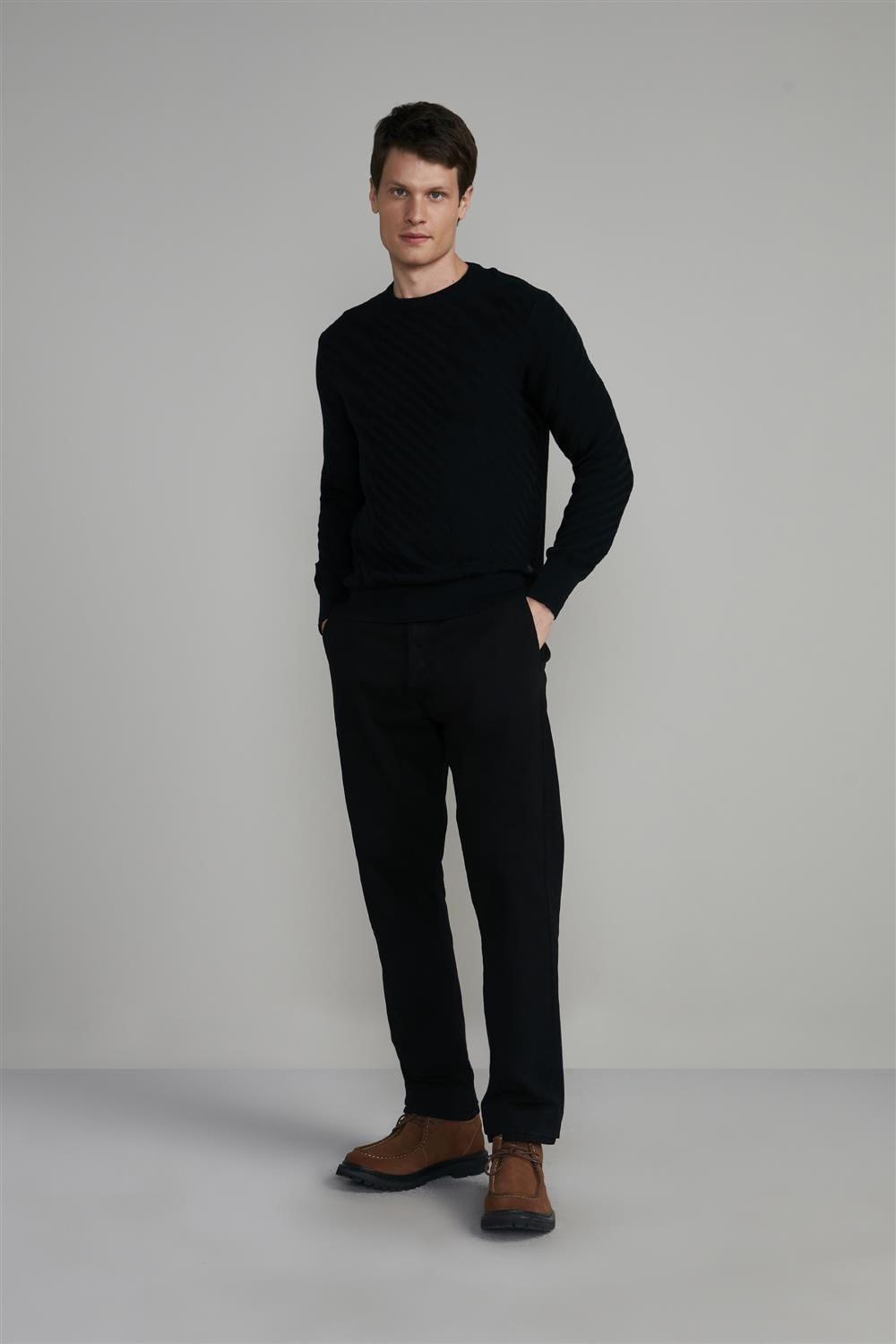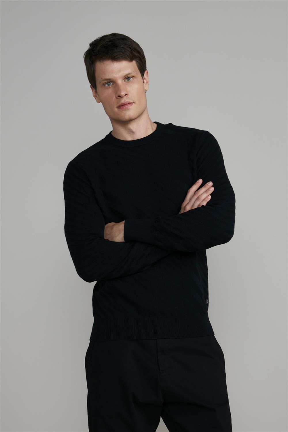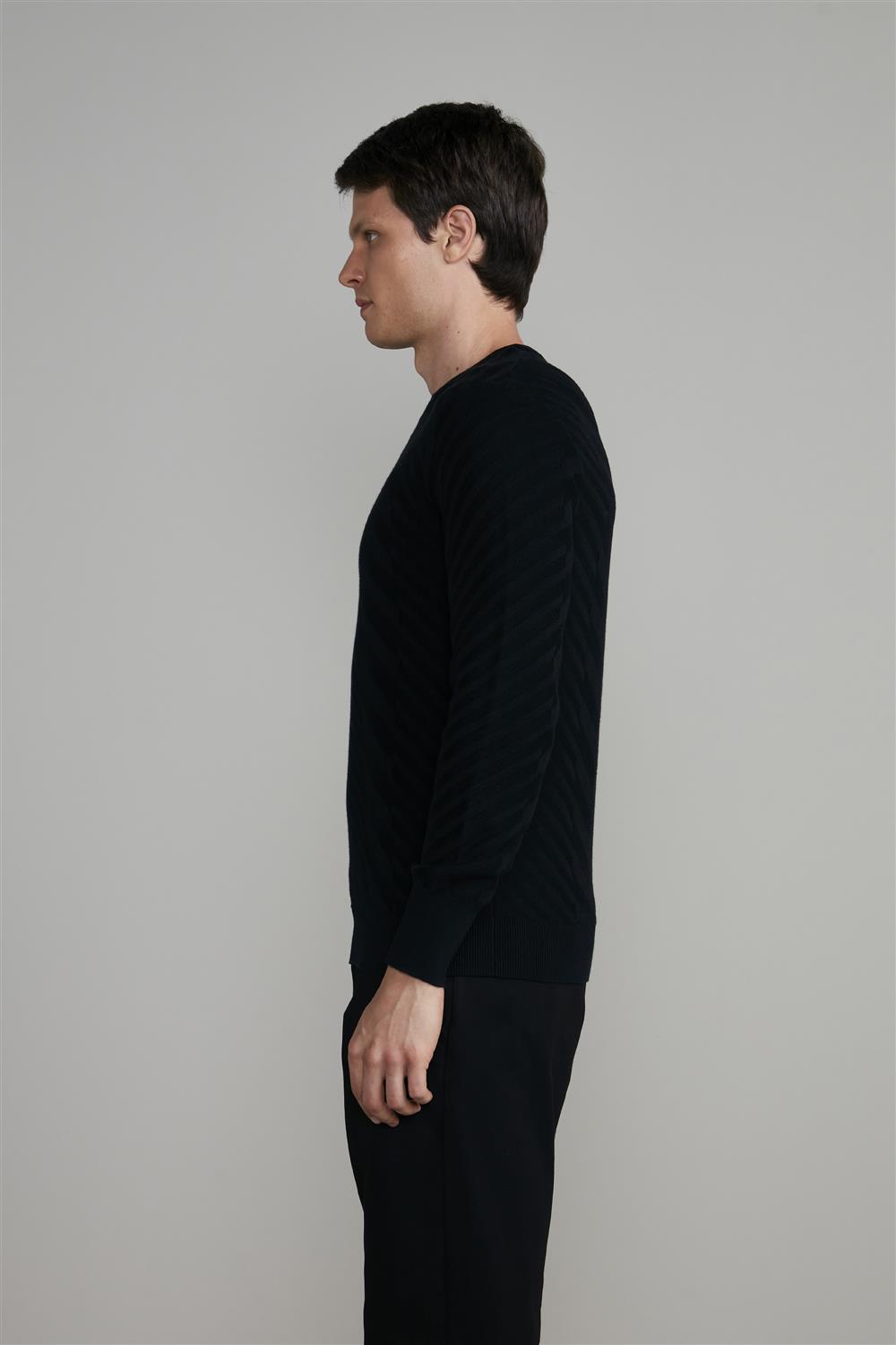 Tricot Gola Careca Jacquard - Preto