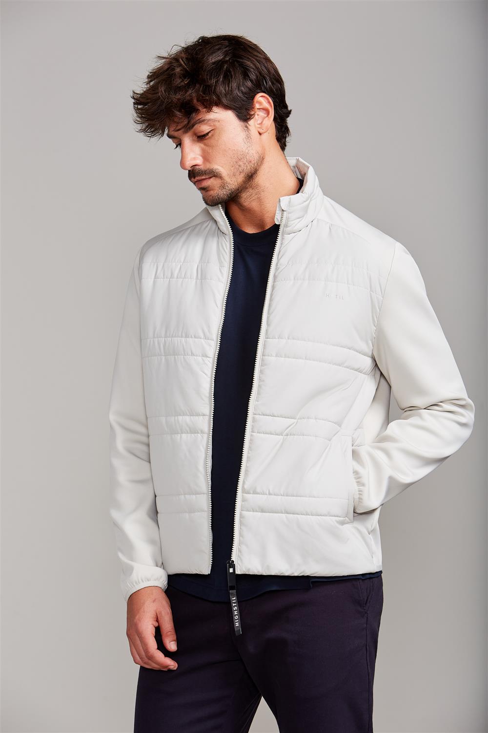 Busca por um look completo? Para o Inverno mais intenso a Jaqueta pode ser combinada com um tricot e/ou com uma camiseta manga longa ou polo Highstil. Para climas mais amenos pode ser usada apenas com uma polo manga curta Highstil ou camiseta manga curta Highstil por baixo. Experimente também a usar com Calças Jeans ou Chino Highstil.