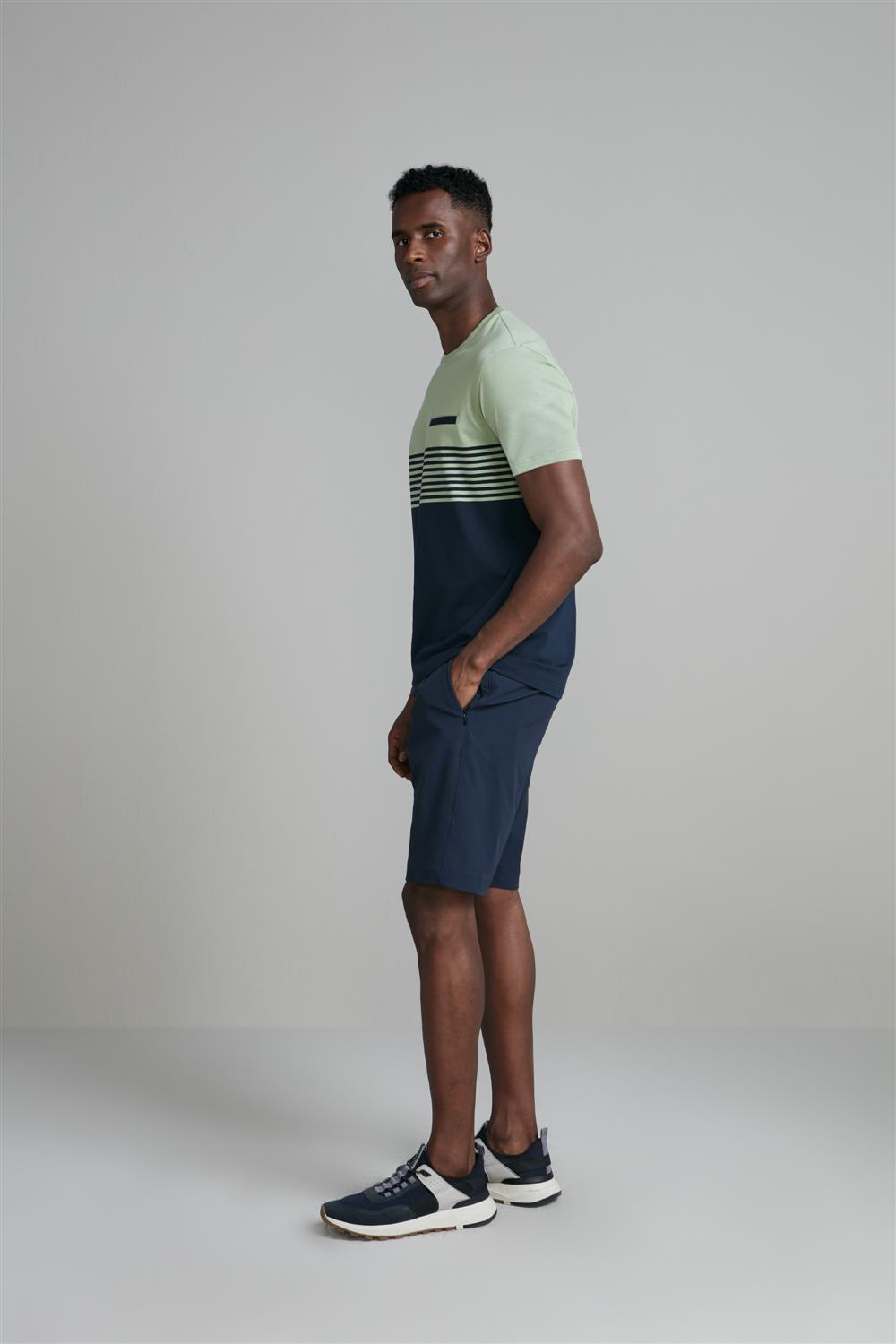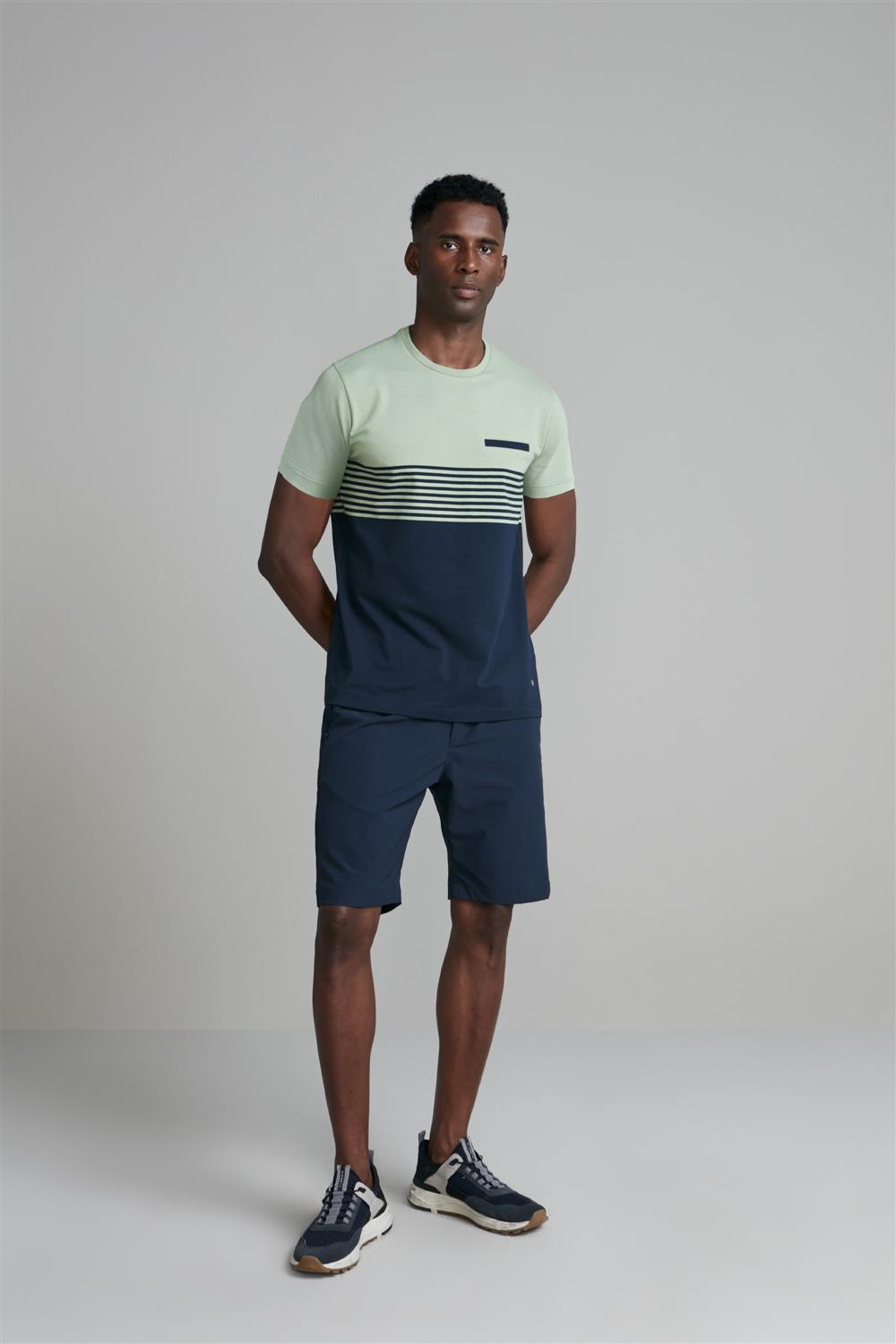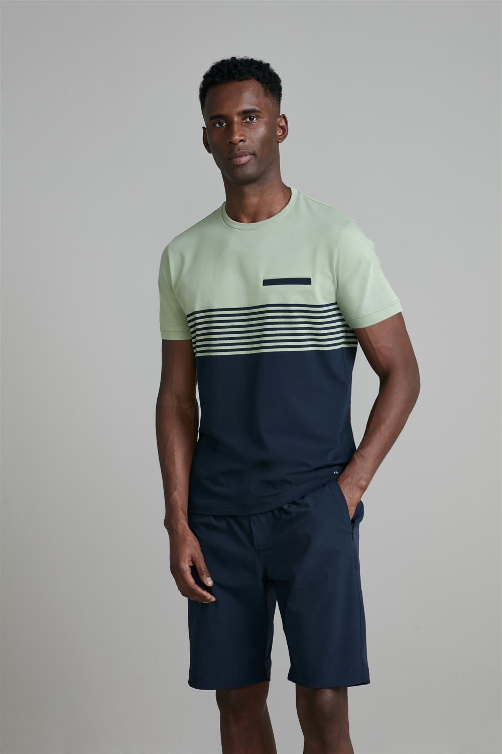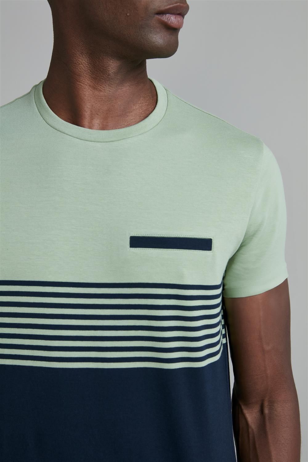 Camiseta Malha Slim Fit - Verde / Azul Marinho