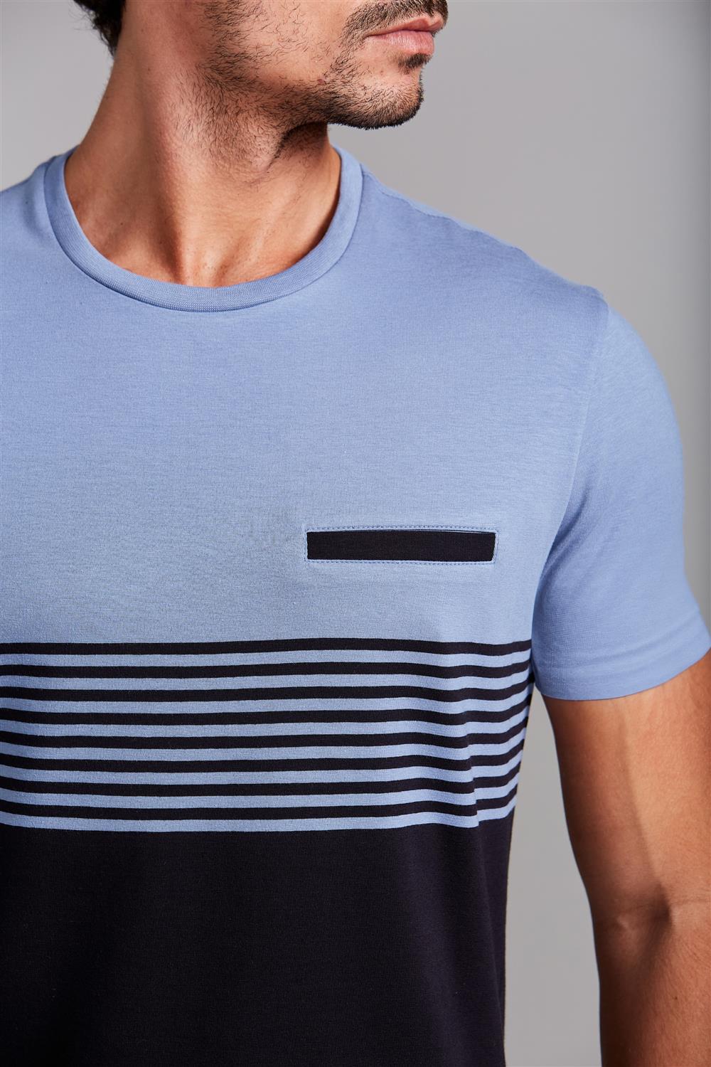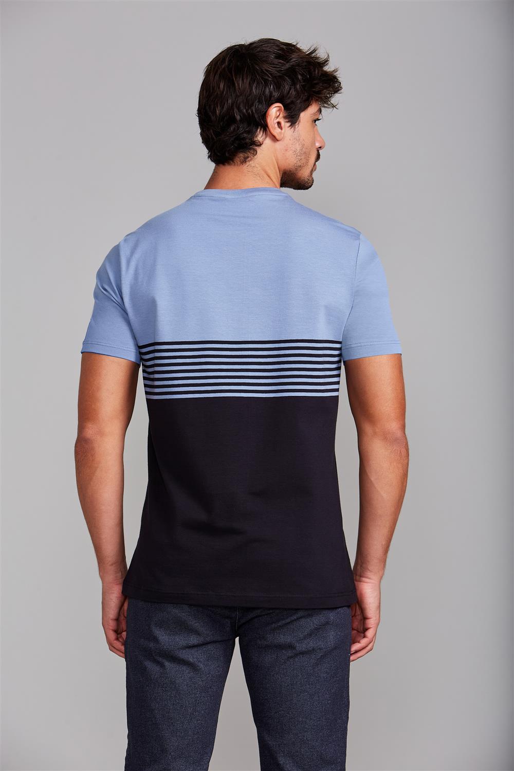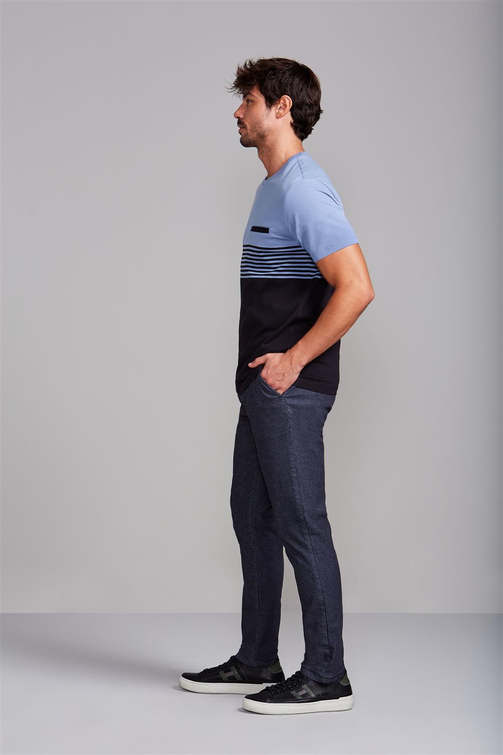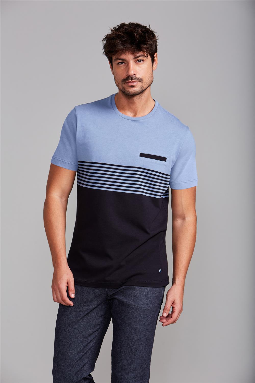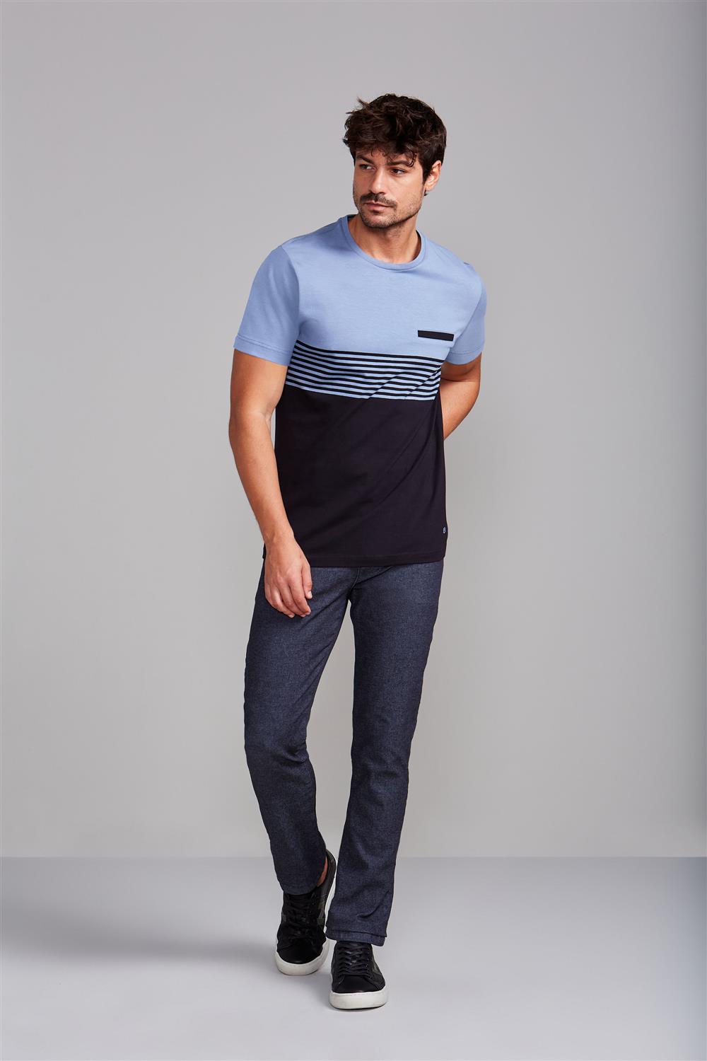 Camiseta Malha Slim Fit - Azul Jeans / Preto