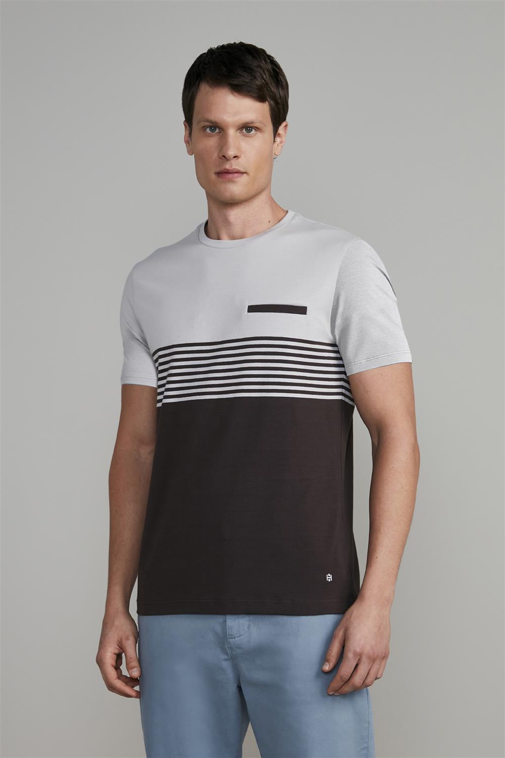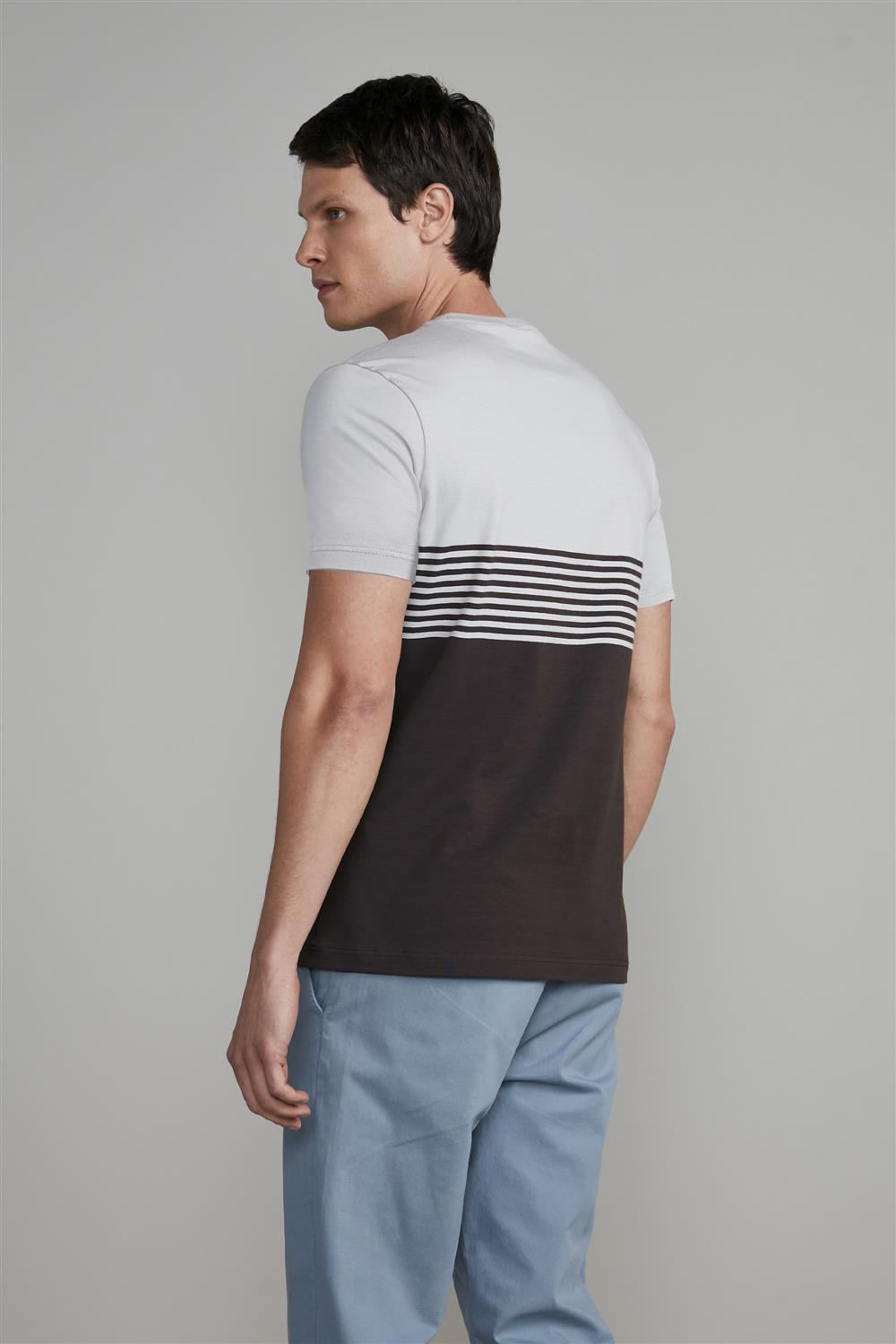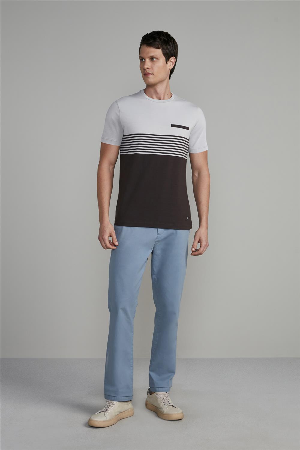 Camiseta Malha Slim Fit - Cinza / Marrom