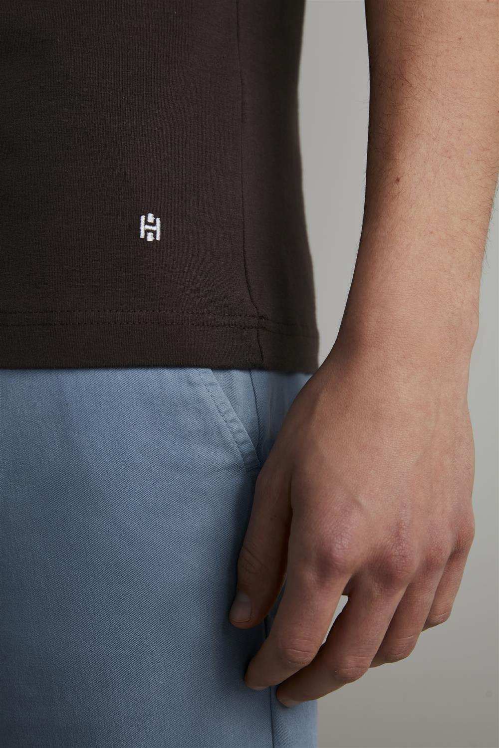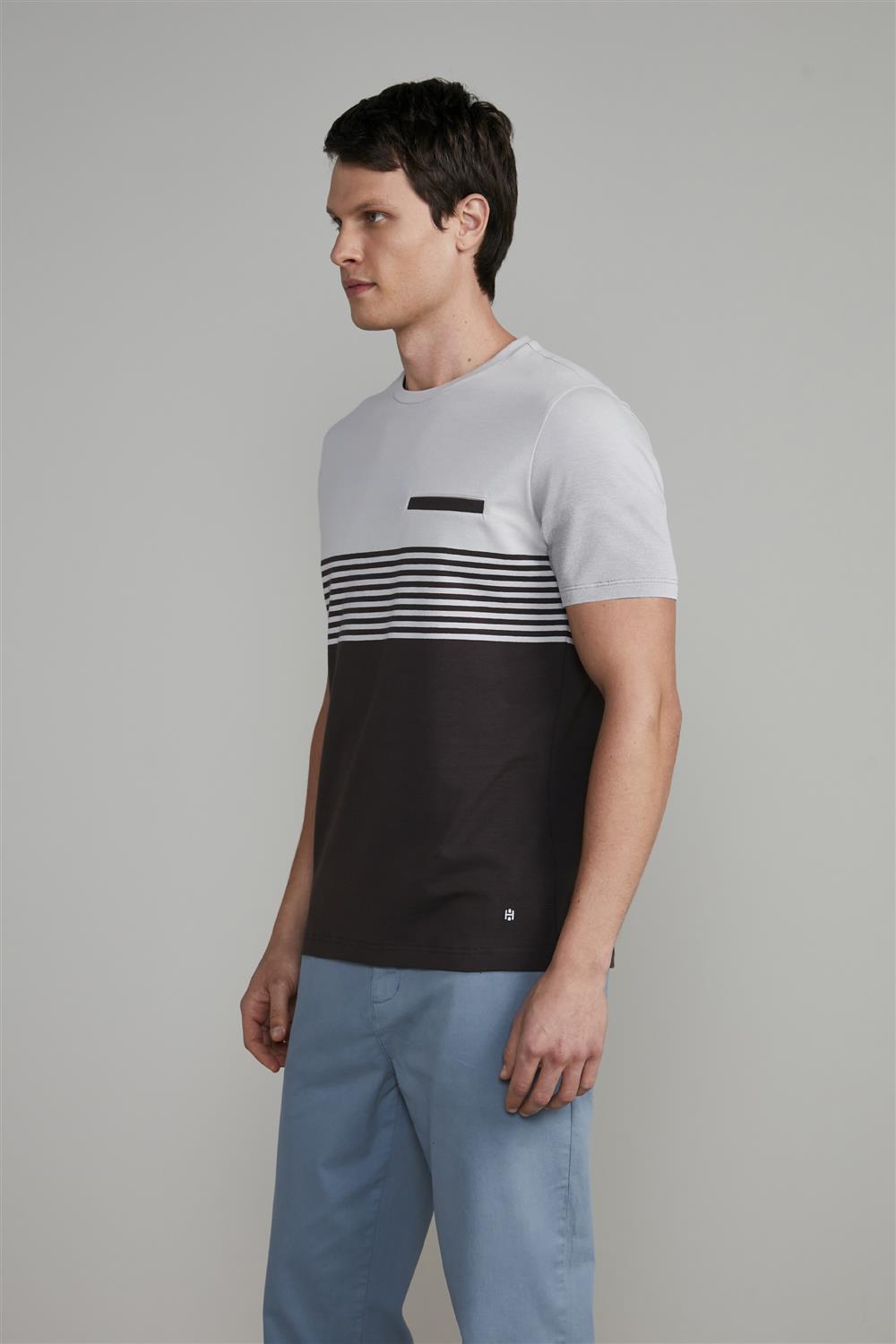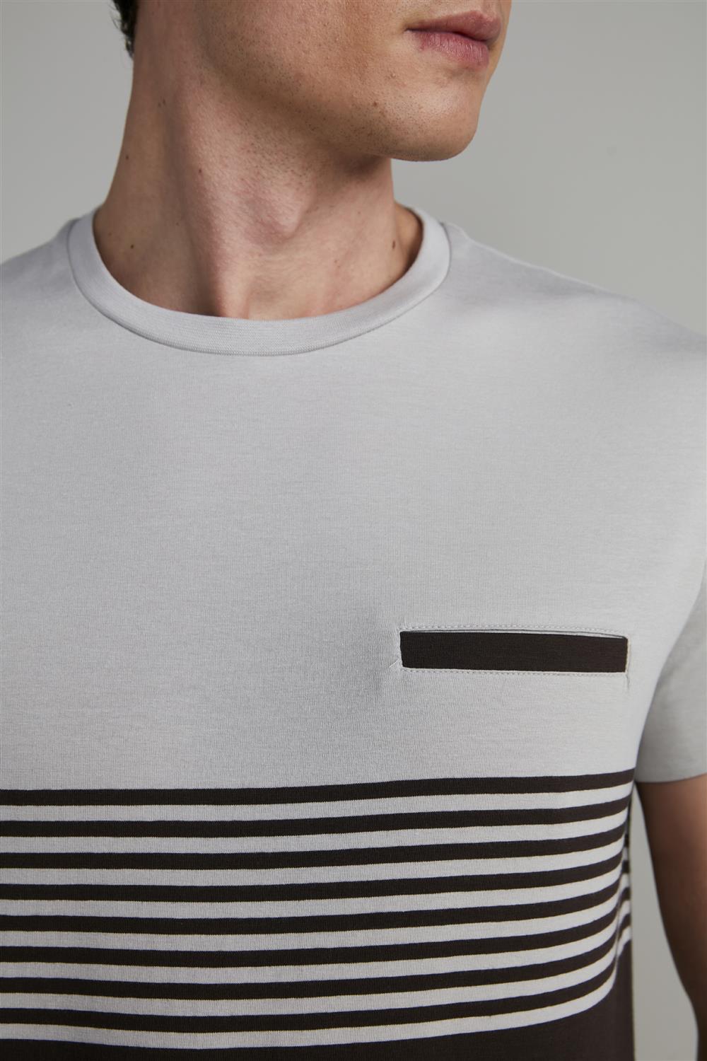 Camiseta Malha Slim Fit - Cinza / Marrom
