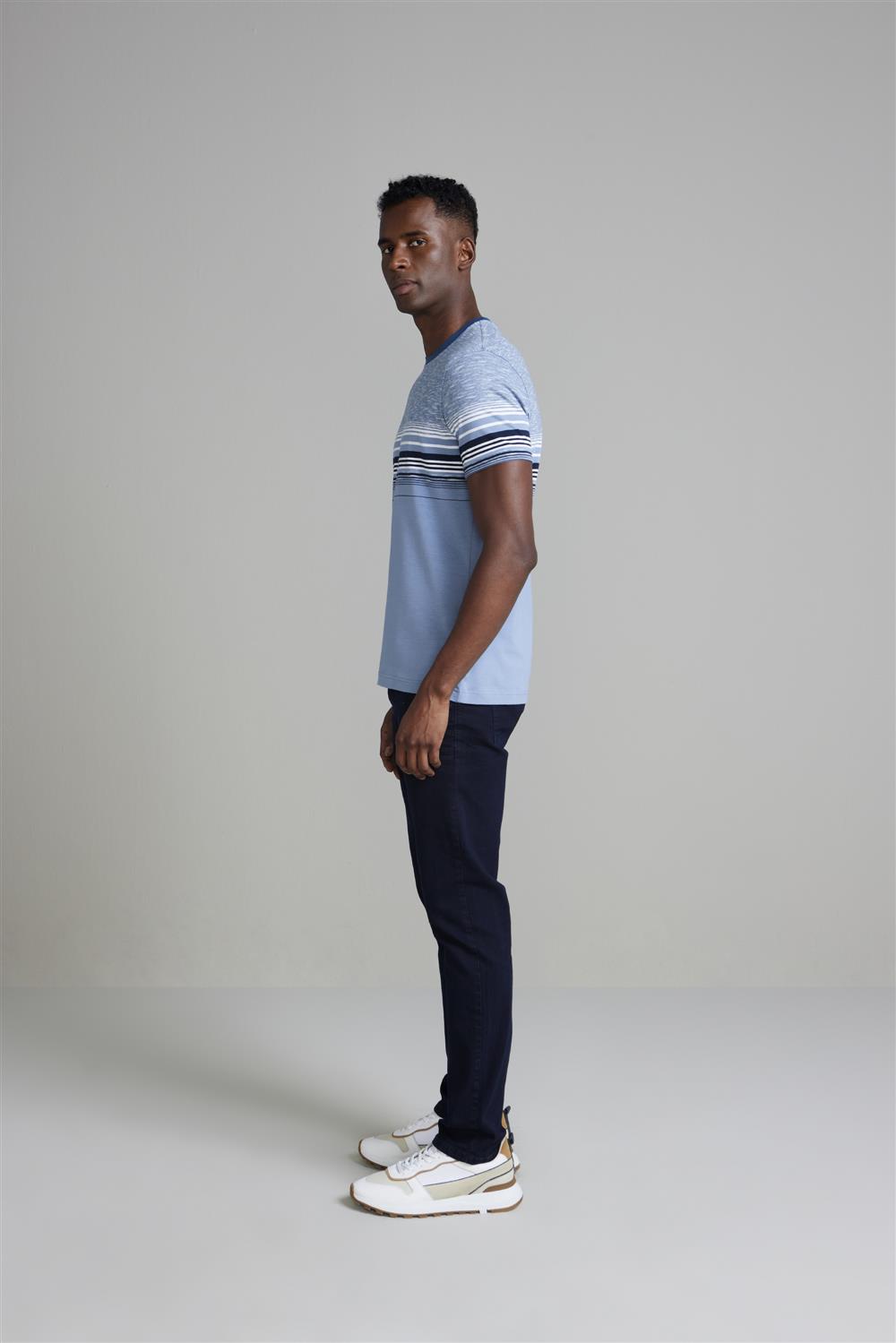 Camiseta Malha Slim Fit - Azul Noturno / Azul Jeans