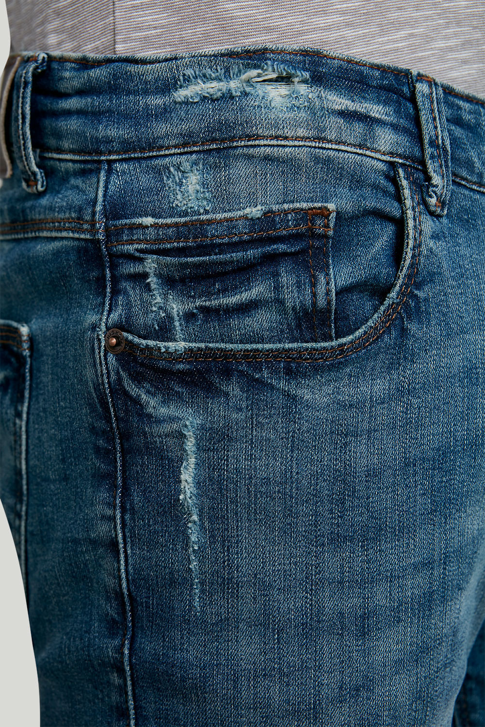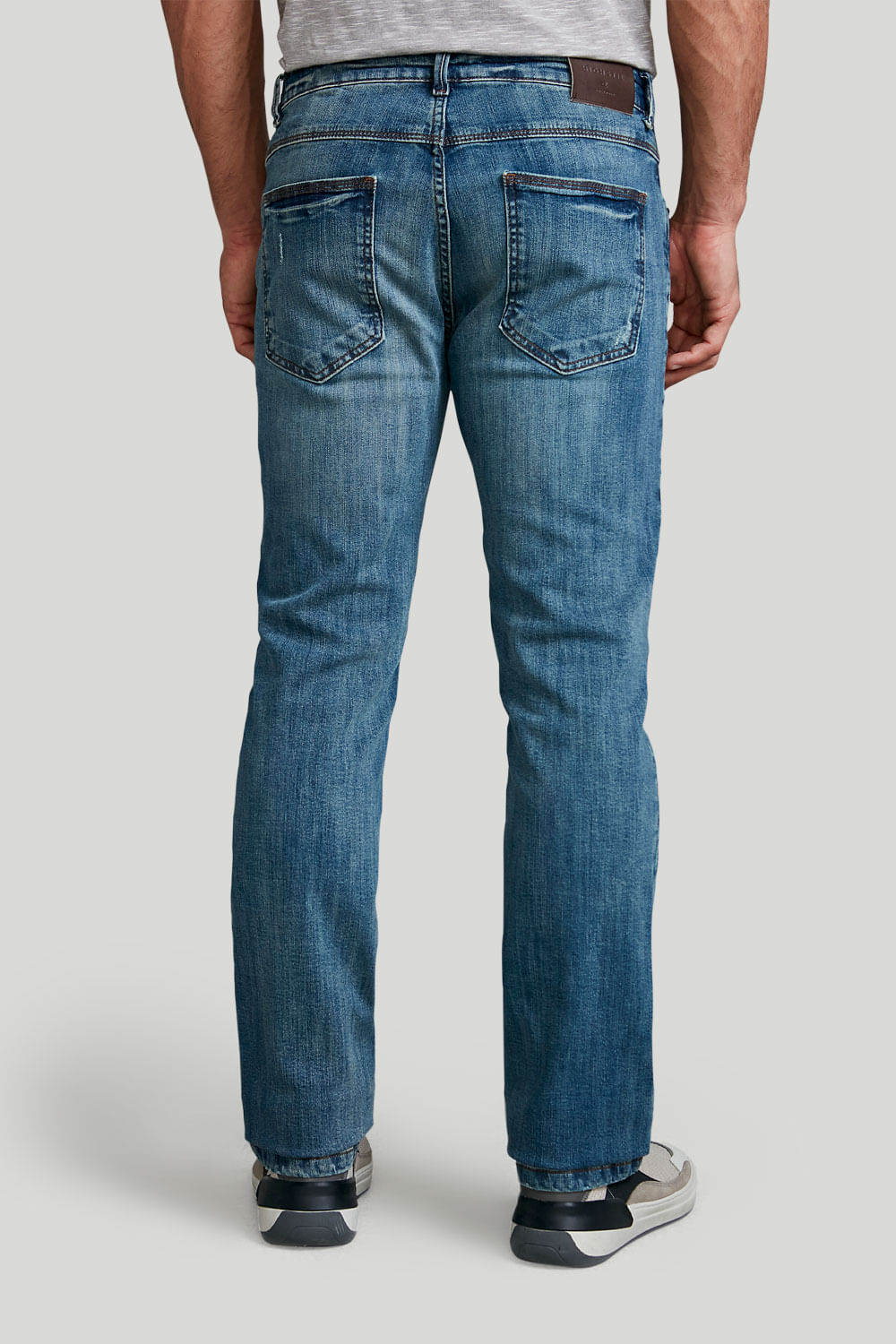 Confeccionada com a modelagem Comfort, a peça apresenta cintura média, um corte clássico e a barra média.