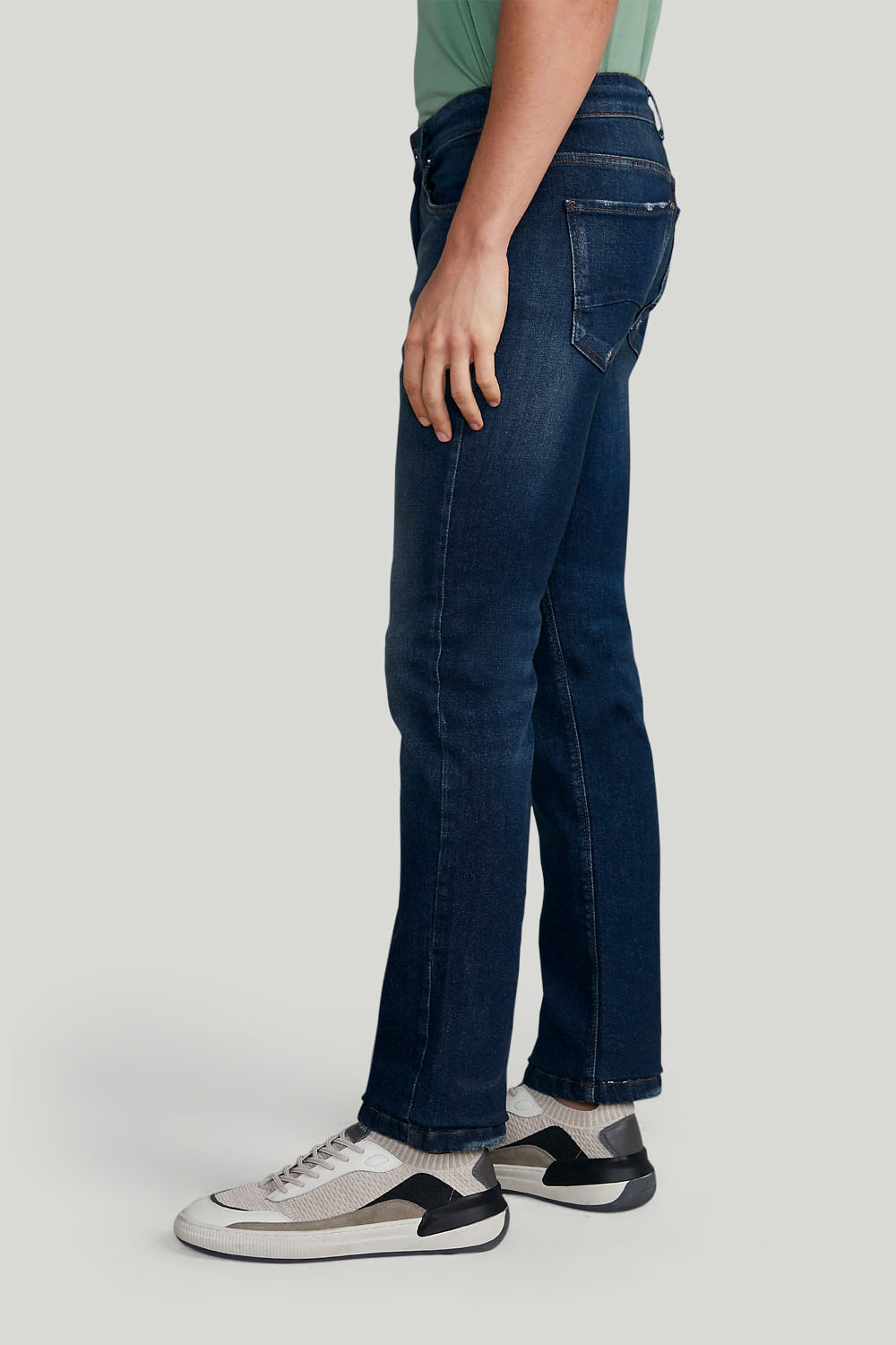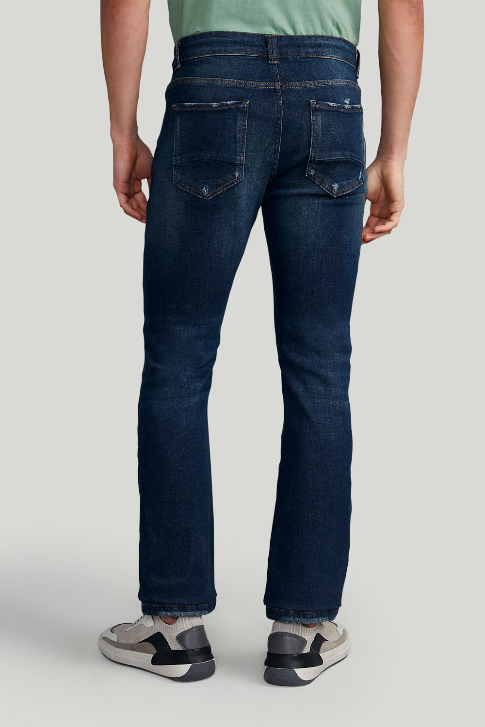 A Calça Jeans Reta é confeccionada em 98% Algodão e 2% Elastano.