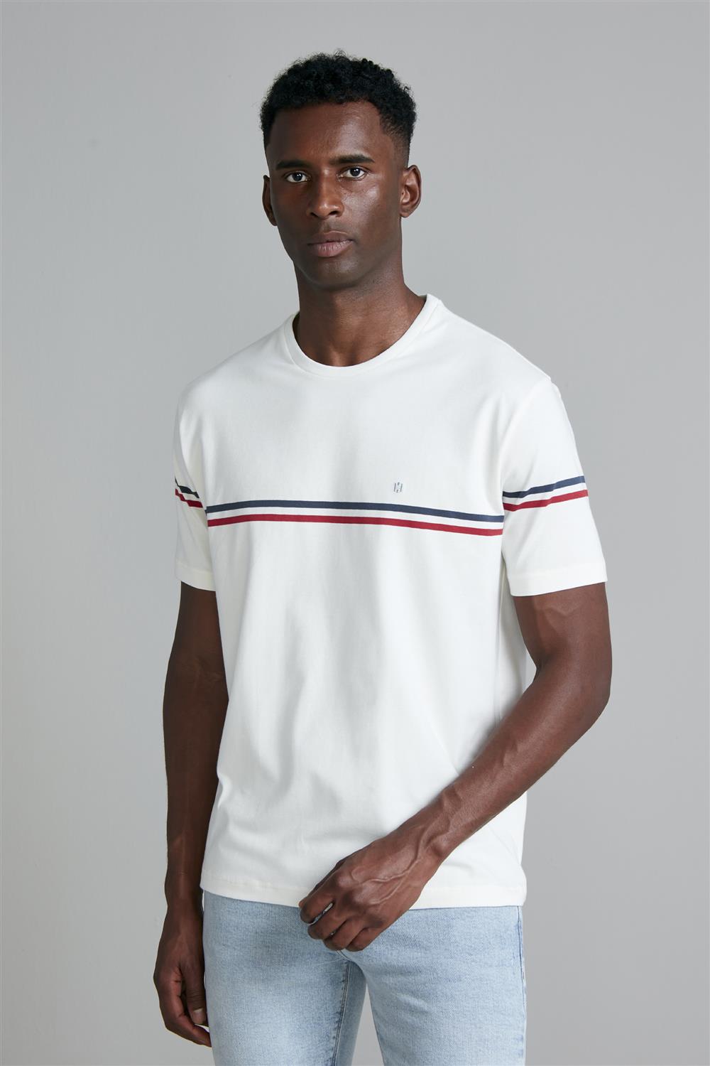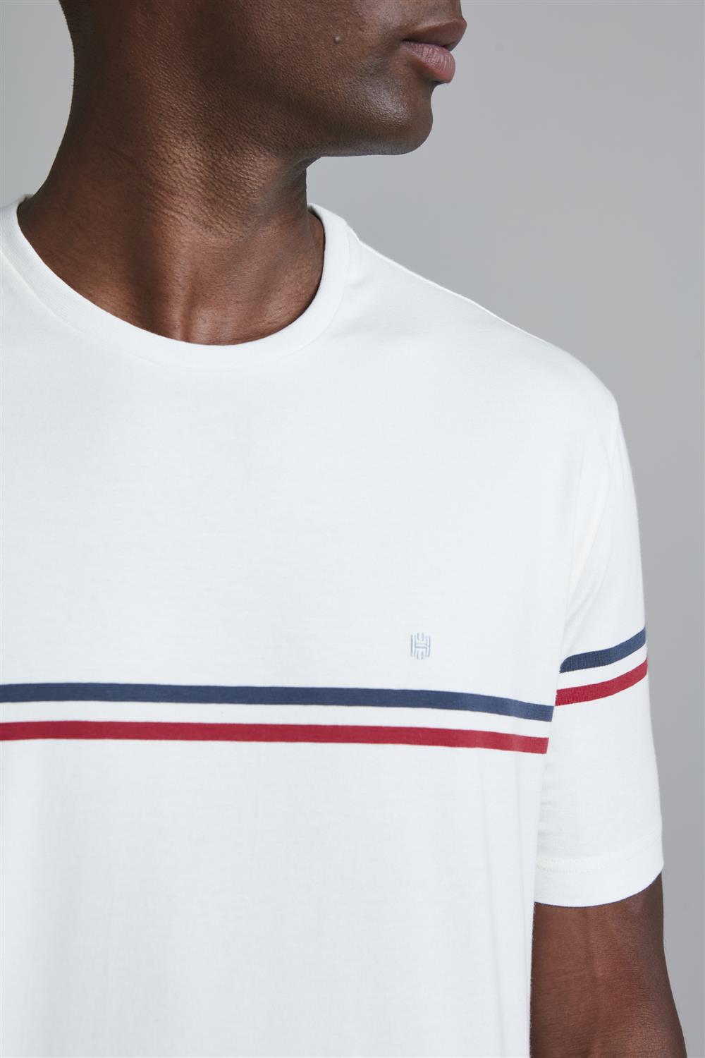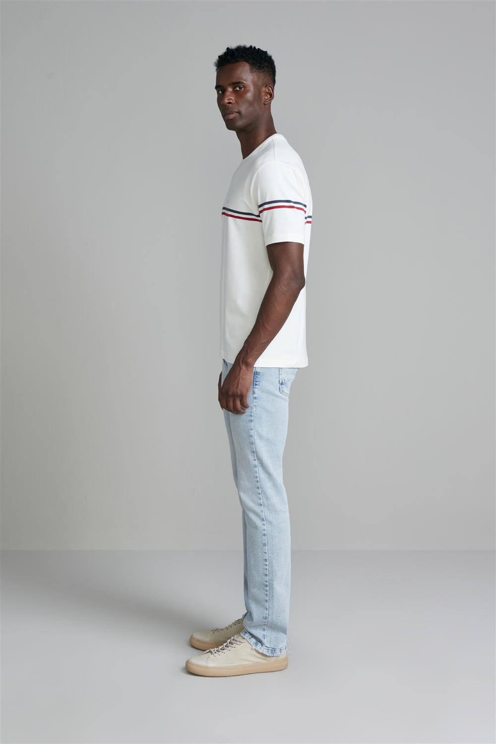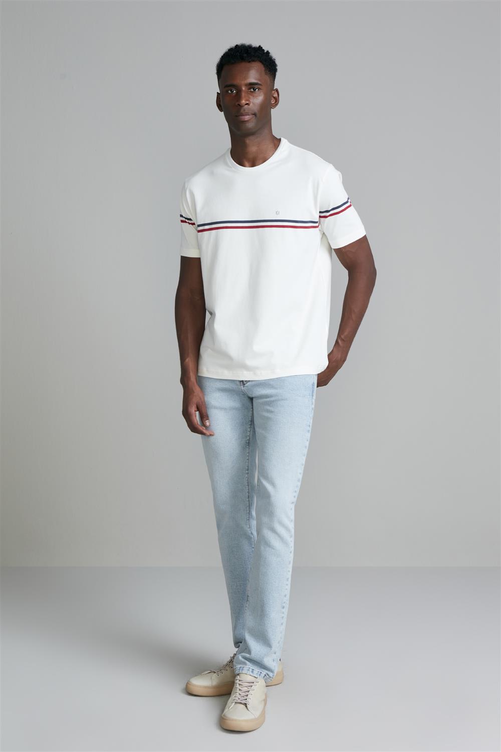 Camiseta Malha Comfort - Creme / Azul Petróleo
