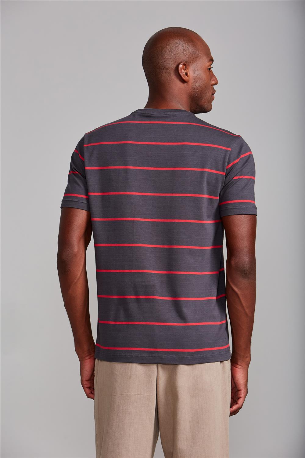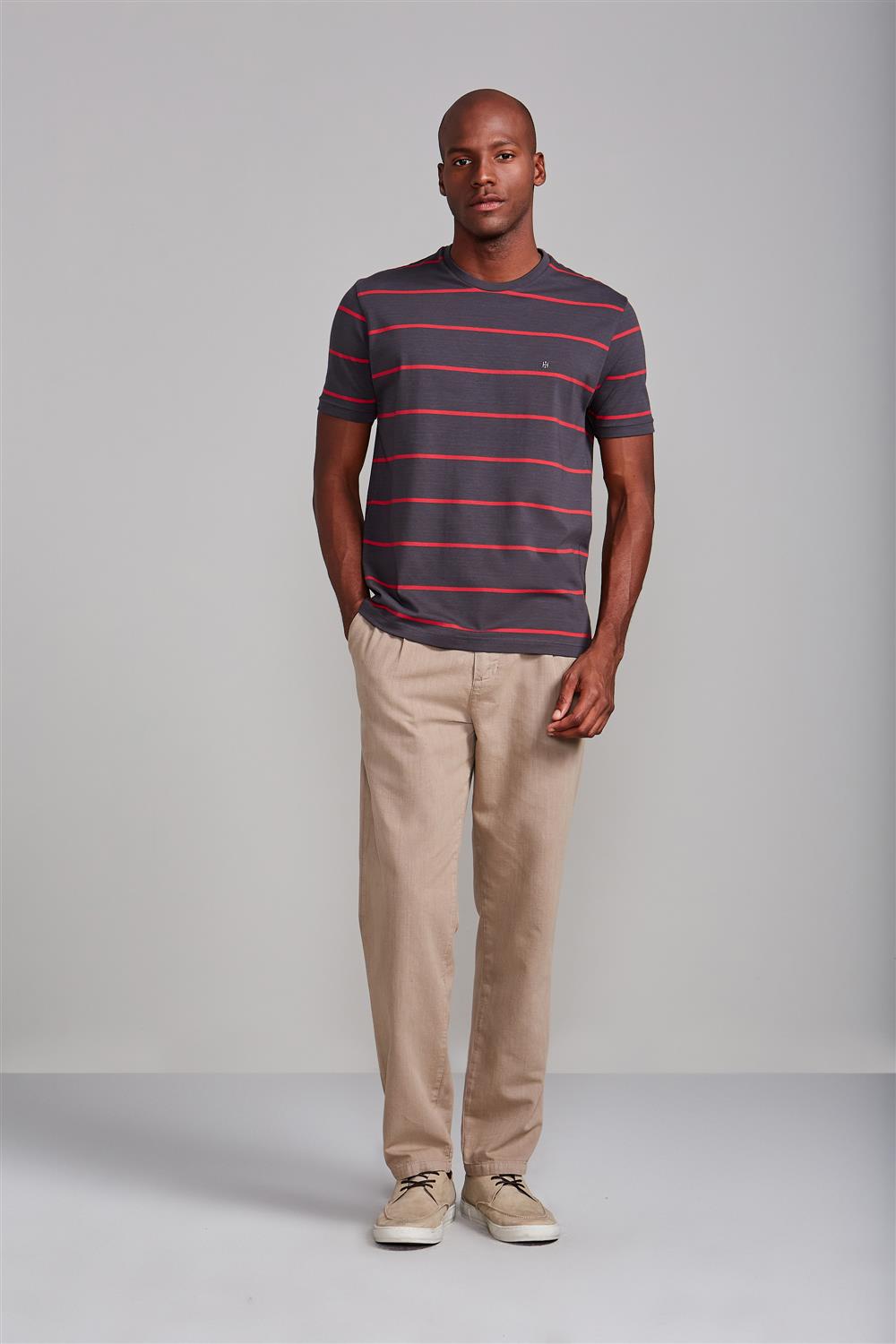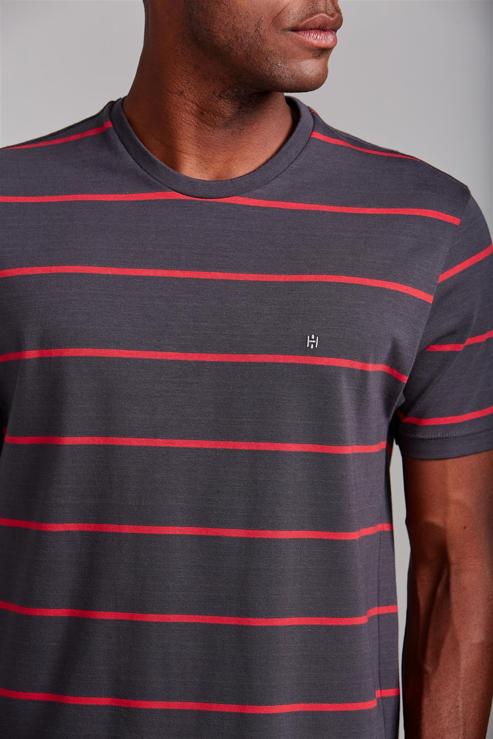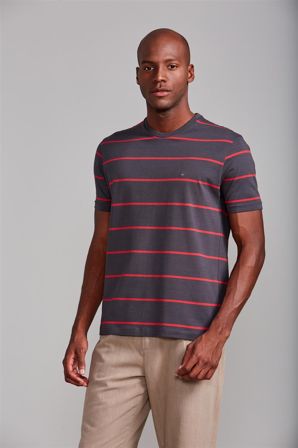 Camiseta Malha Comfort - Cinza Chumbo / Vermelho Rubi