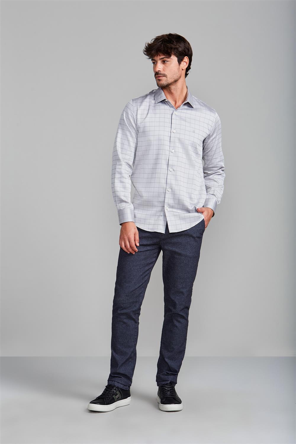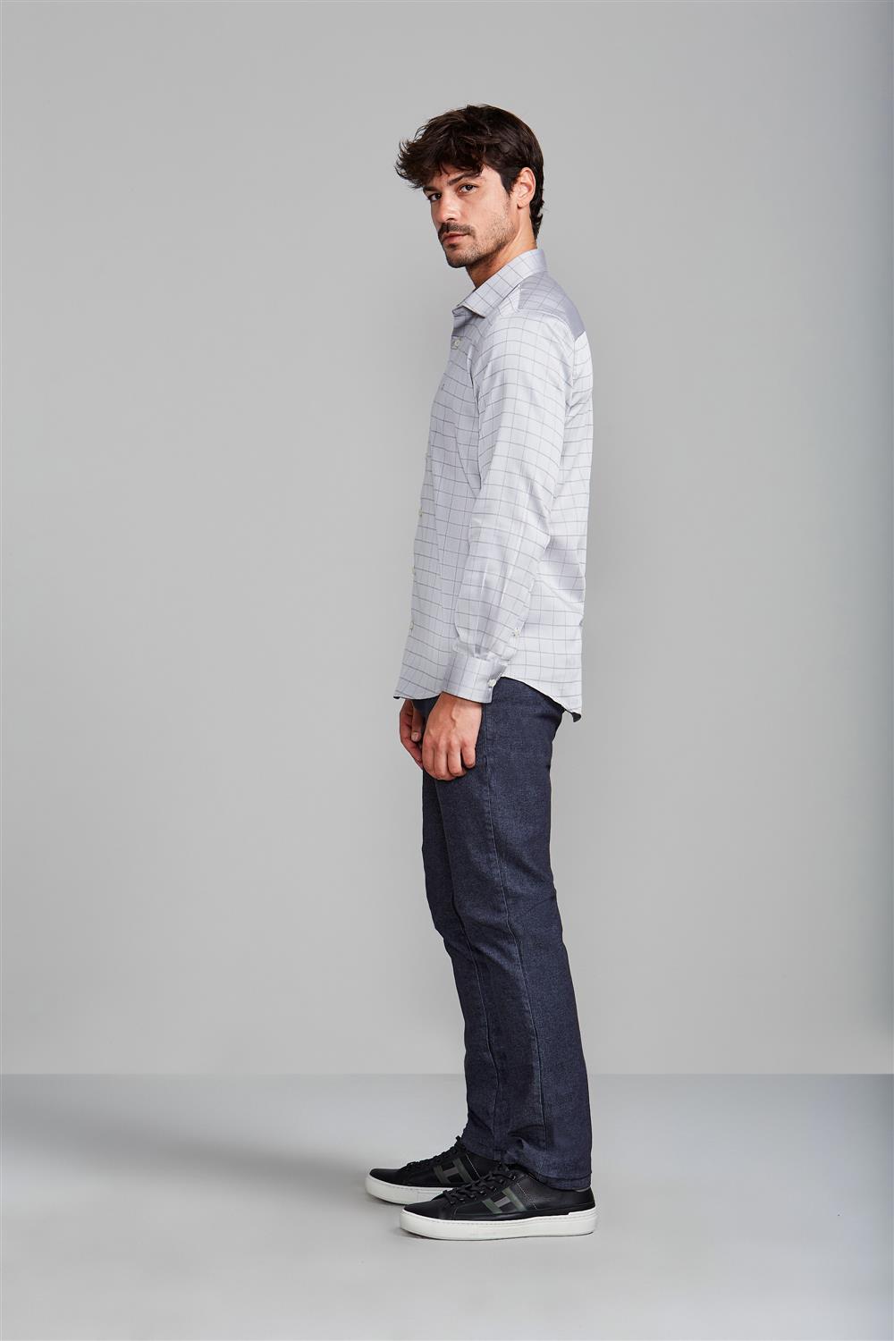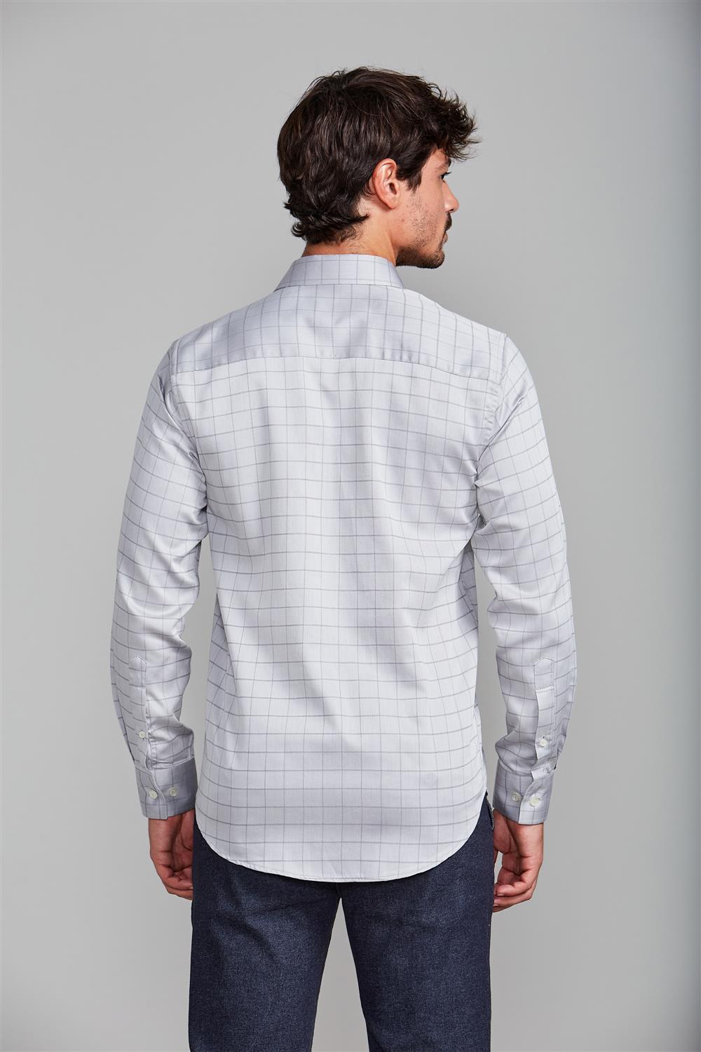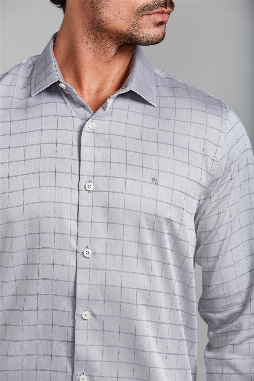 Camisa Algodão Egípcio Slim Fit - Cinza Claro