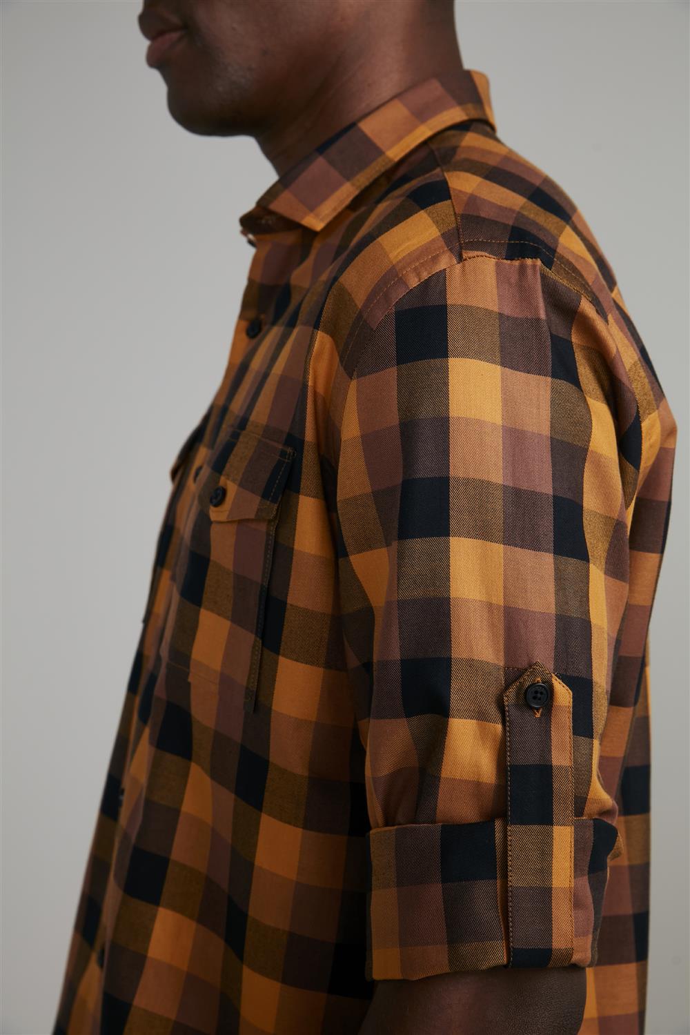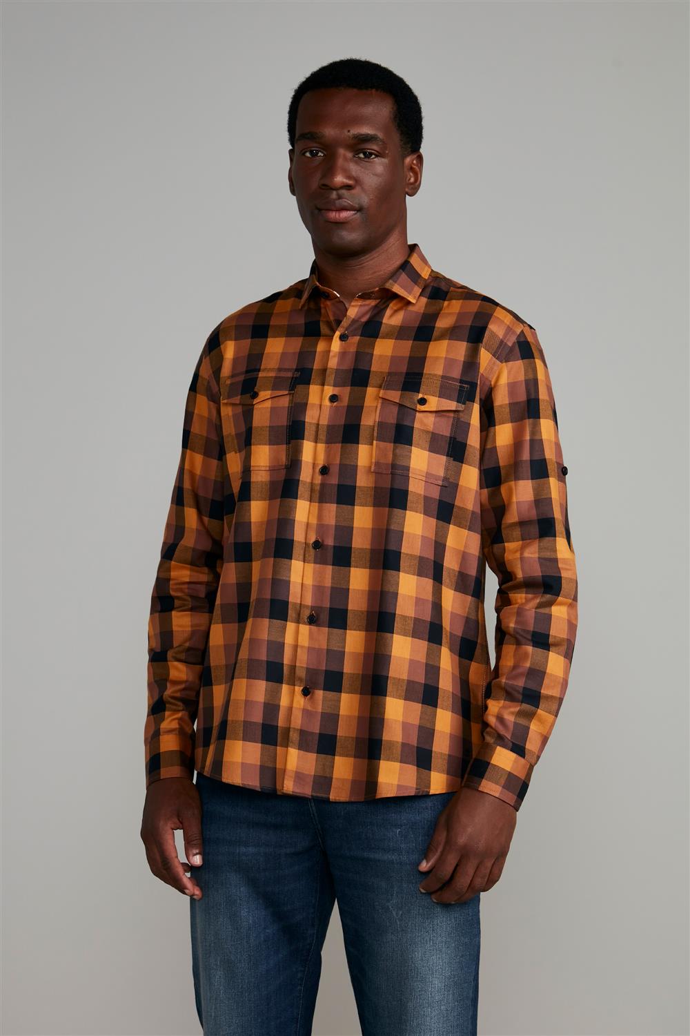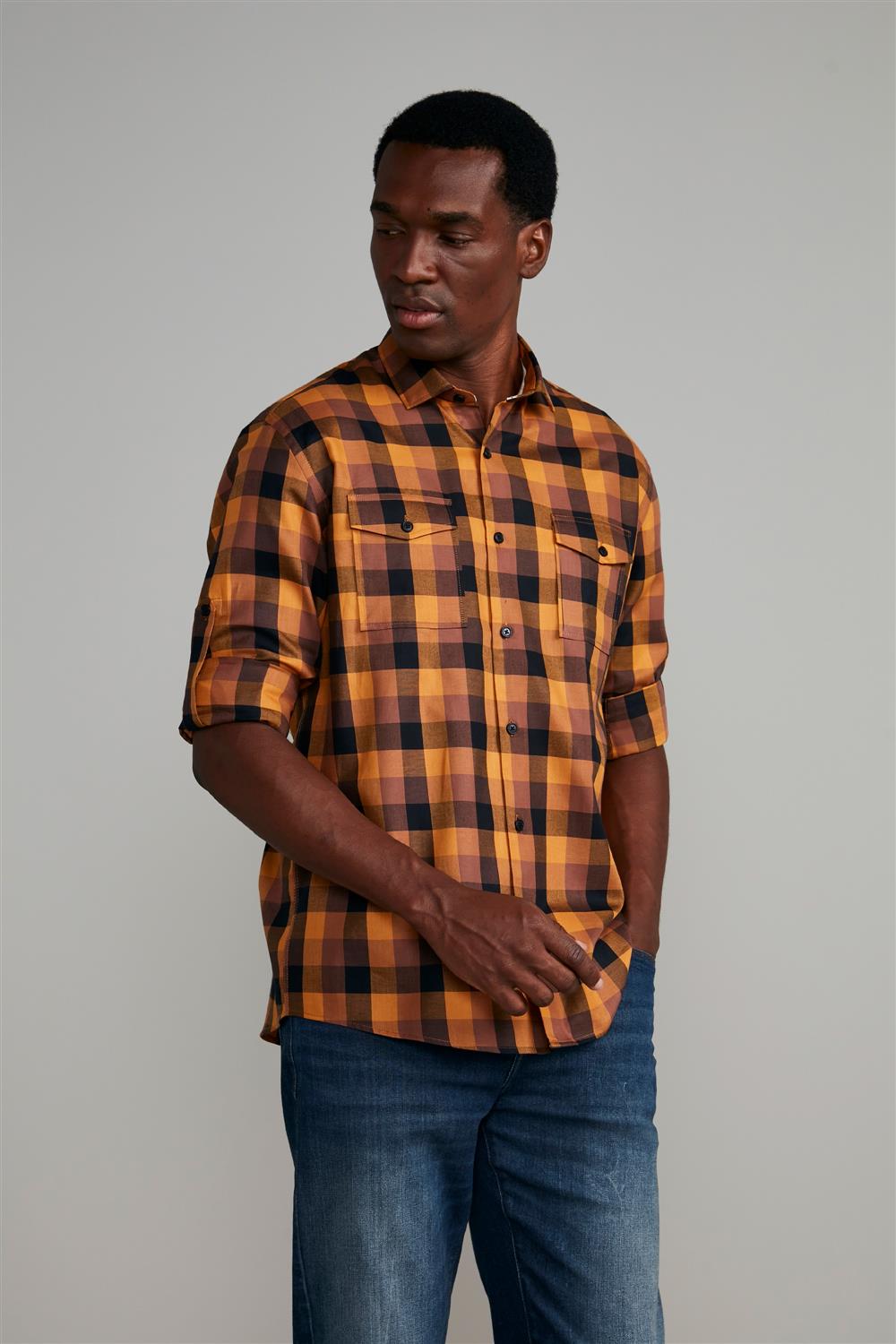 Camisa Xadrez com Bolso Comfort - Amarelo Mostarda
