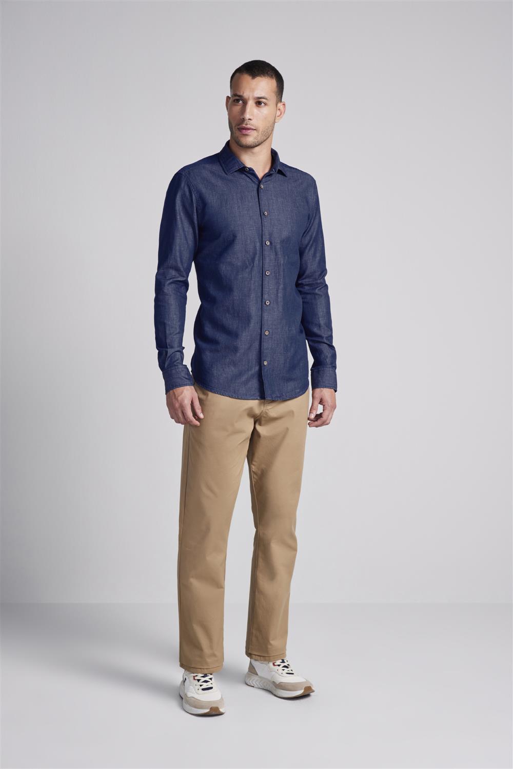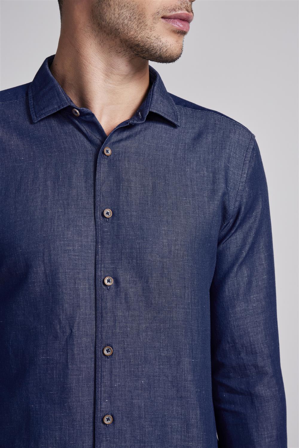 A Camisa Linen Blend Slim Fit é confeccionada em 78% Algodão e 22% Linho, oferece leveza, frescor e conforto, ideal para climas quentes. A peça conta com colarinho Londres.